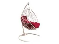 Подвесное кресло КАПЛЯ ЛЮКС с ротангом белое, бежева подушка