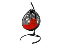Подвесное кресло КАПЛЯ ЛЮКС с ротангом черное, бежевая подушка |