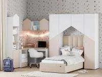 Детская Токио 1 / Белый текстурный - набор мебели для проживания 2-х детей.Имеется зона учебы.