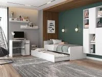- Токио кровать одинарная 0,9 с основанием и выкатной кроватью / Белый текстурный