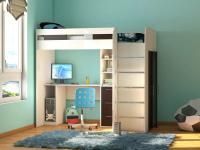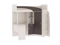 Лео кровать-чердак Дуб Сонома / Белый снег - универсальный предмет интерьера для двух спальных мест в детской комнате.Внизу компьютерный стол с пеналом для принадлежностей и шкаф для одежды с полками и вешалкой для плечиков с одеждой.