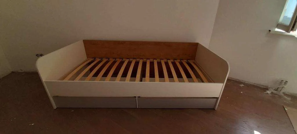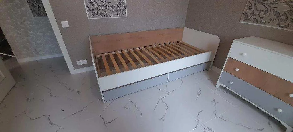 Кровать оснащена ящиками для хранения белья.