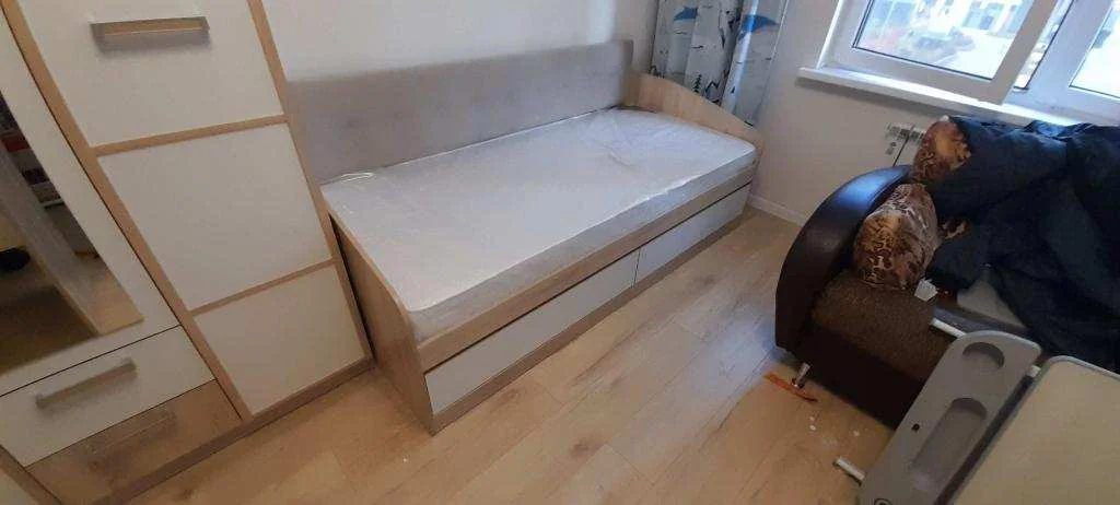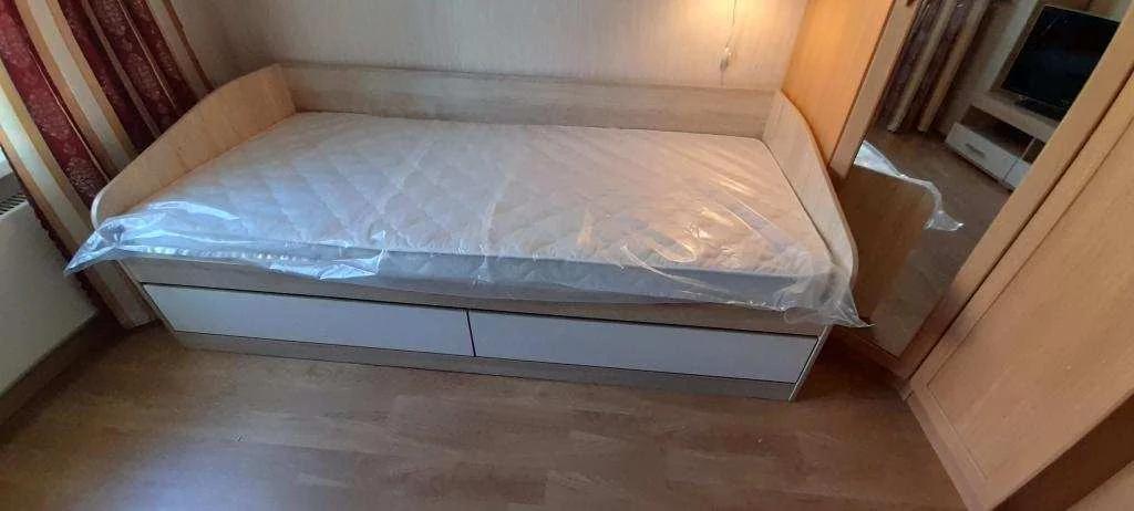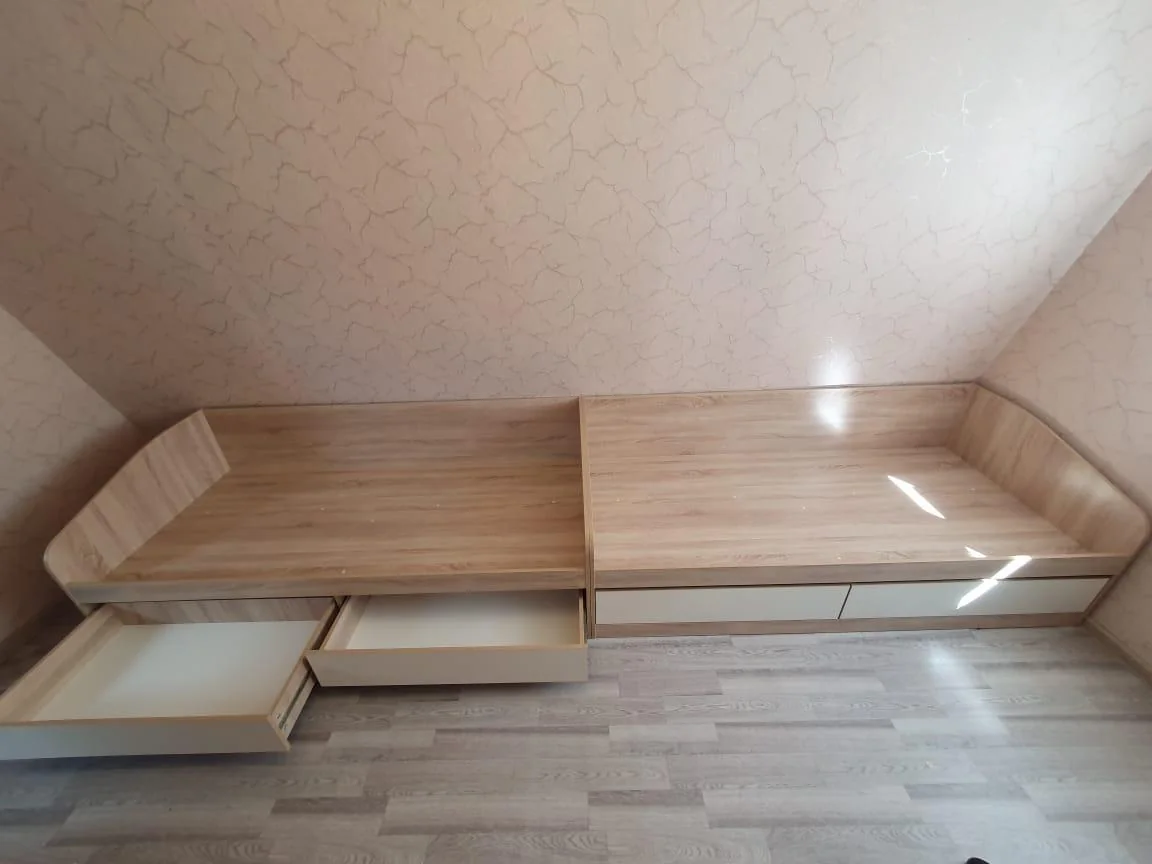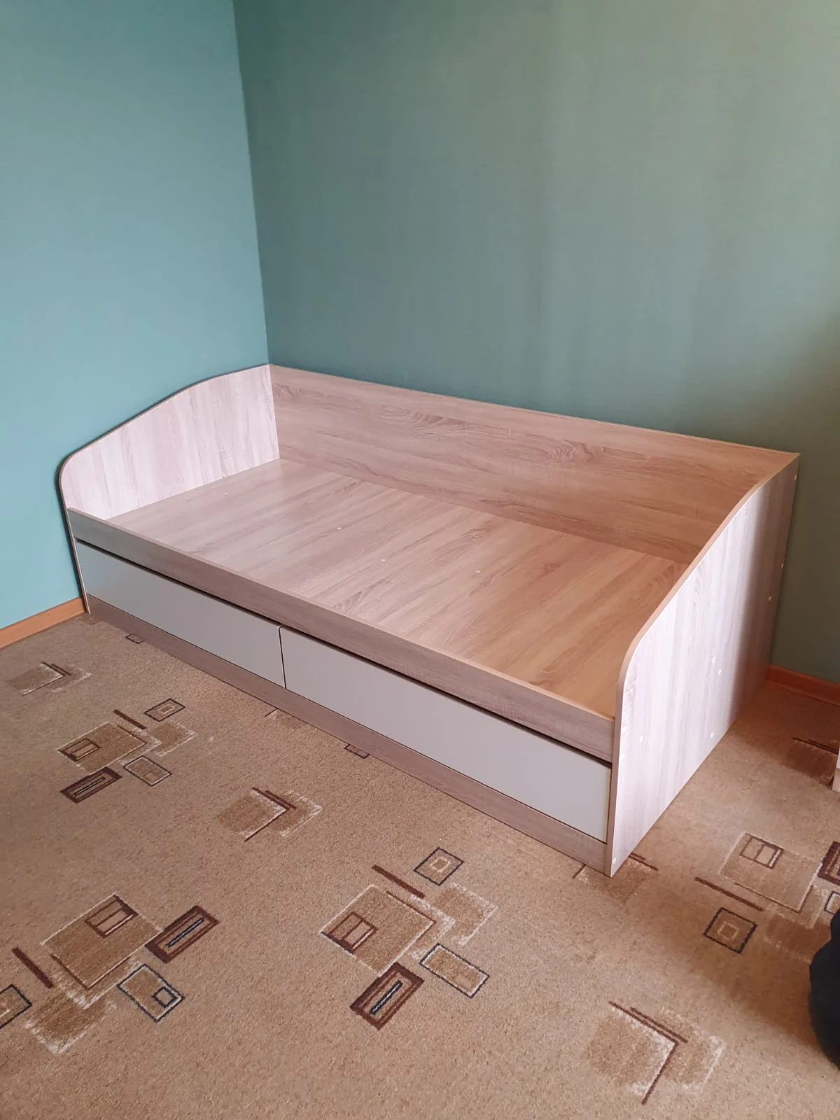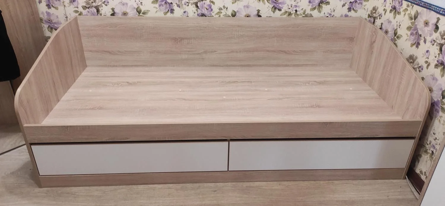 Кровать оборудована основанием для матраса и 2-я выдвижными ящиками.