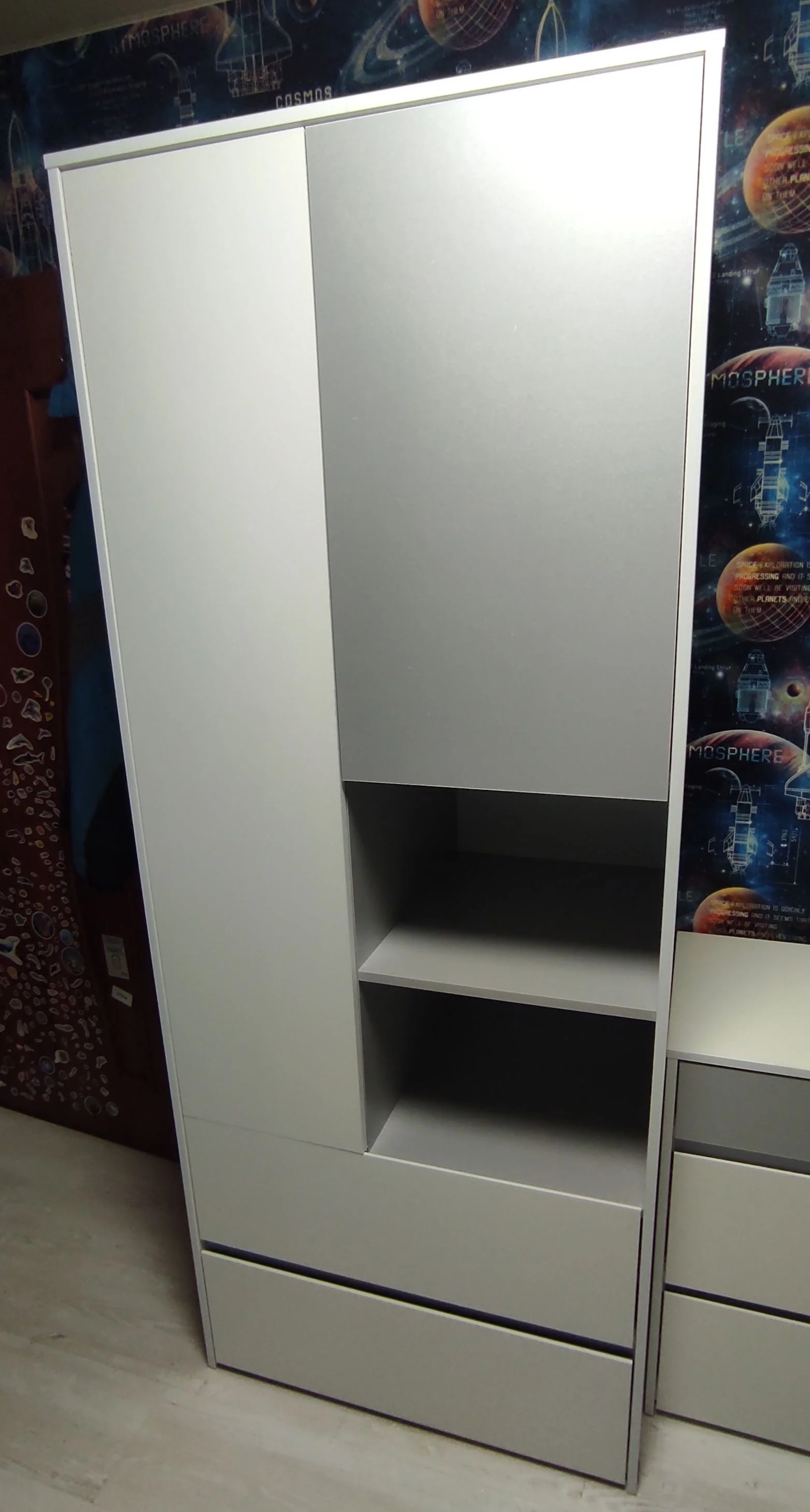 Торонто шкаф для одежды 13.333 Белый/Серый - комбинированная система хранения для детской или молодежной комнаты.Конструкция с 2-я глухими распашными дверцами.