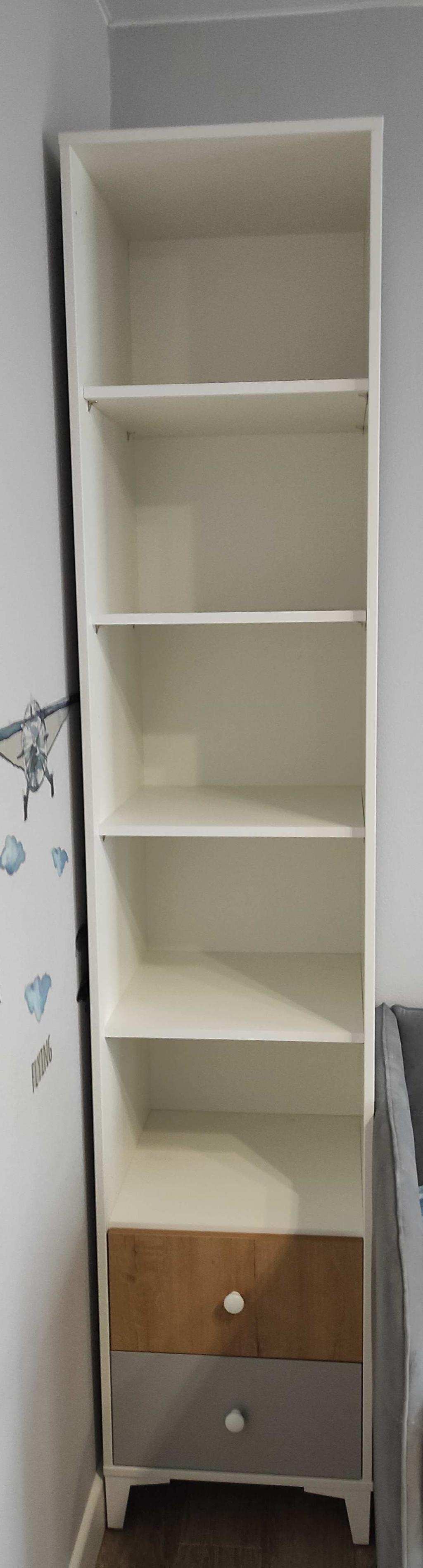 НМ 041.14 шкаф-пенал Морти Дуб Бунратти/белый/серый сделает интерьер более функциональным. Конструкция с 2-я выдвижными ящиками и 5-ю открытыми полками.