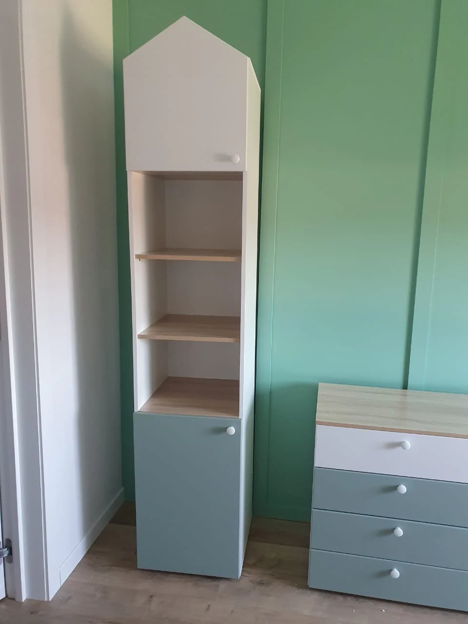 НМ 041.44 шкаф для книг Банни левый белый/дуб сонома/макарун создаст вместительное место хранения белья в детской комнате. Конструкция с 2-я глухими распашными дверцами, внутри 6-ть полок для хранения.