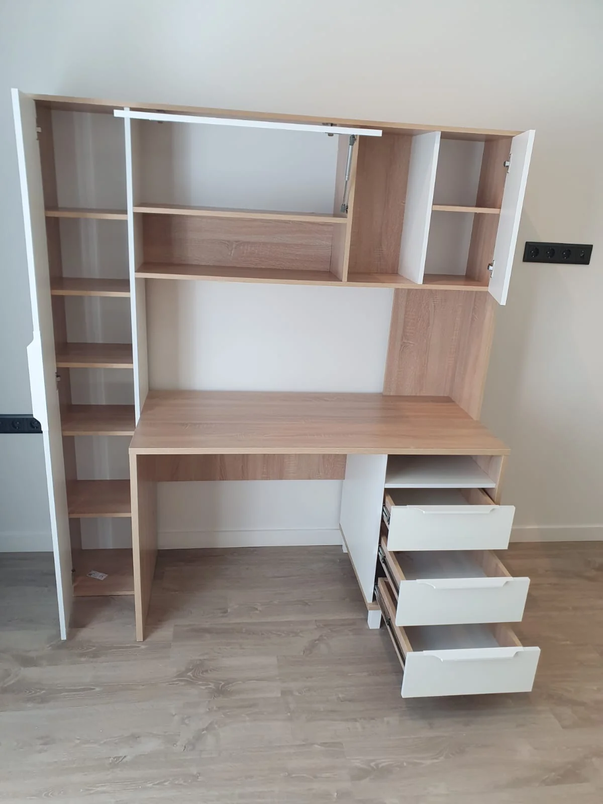 Чудесный рабочий стол. Очень много мест для хранения. Качество на высоте. Спасибо!