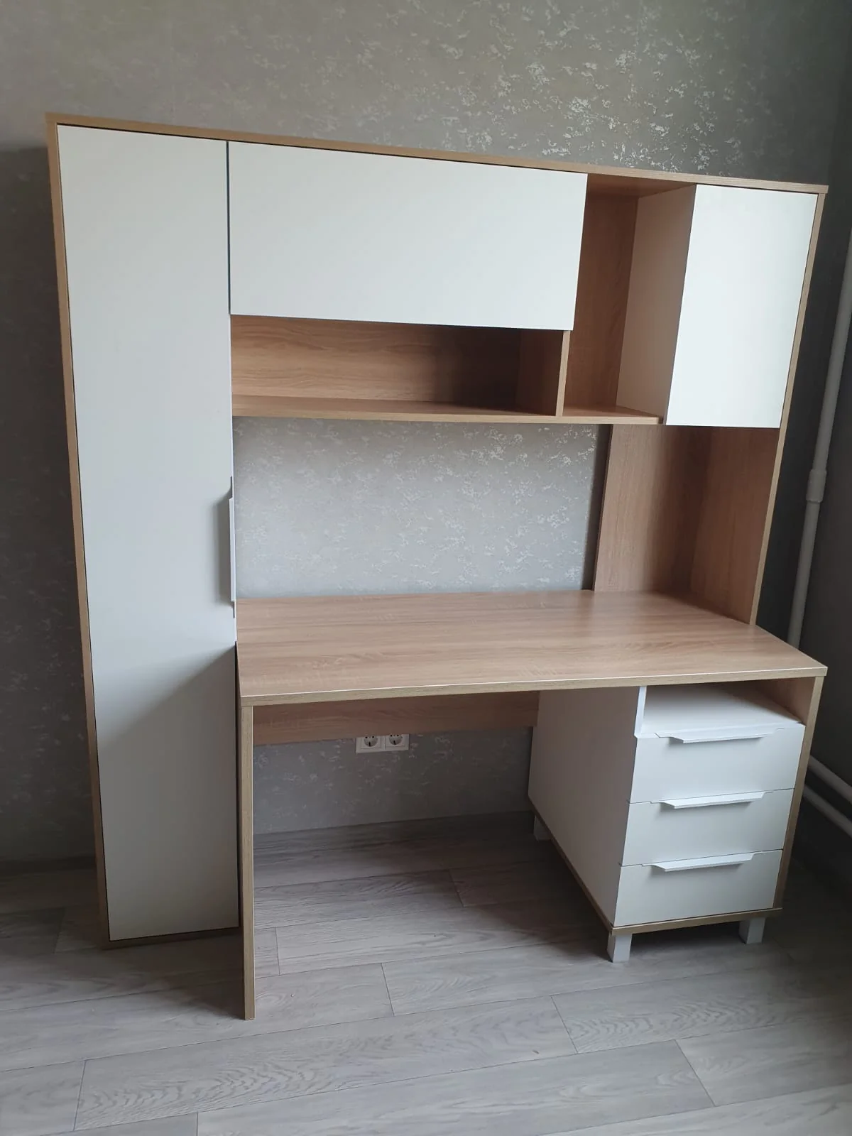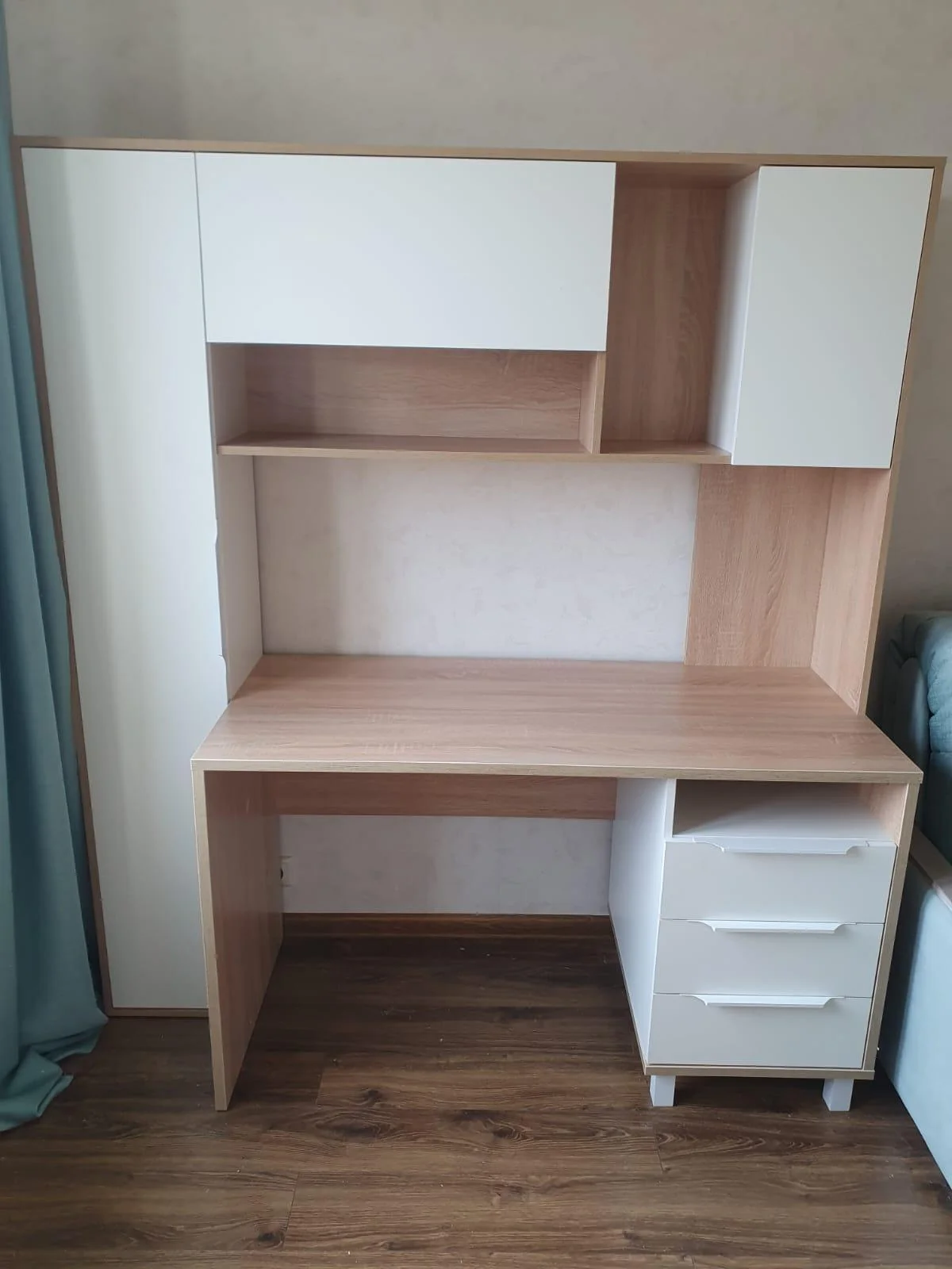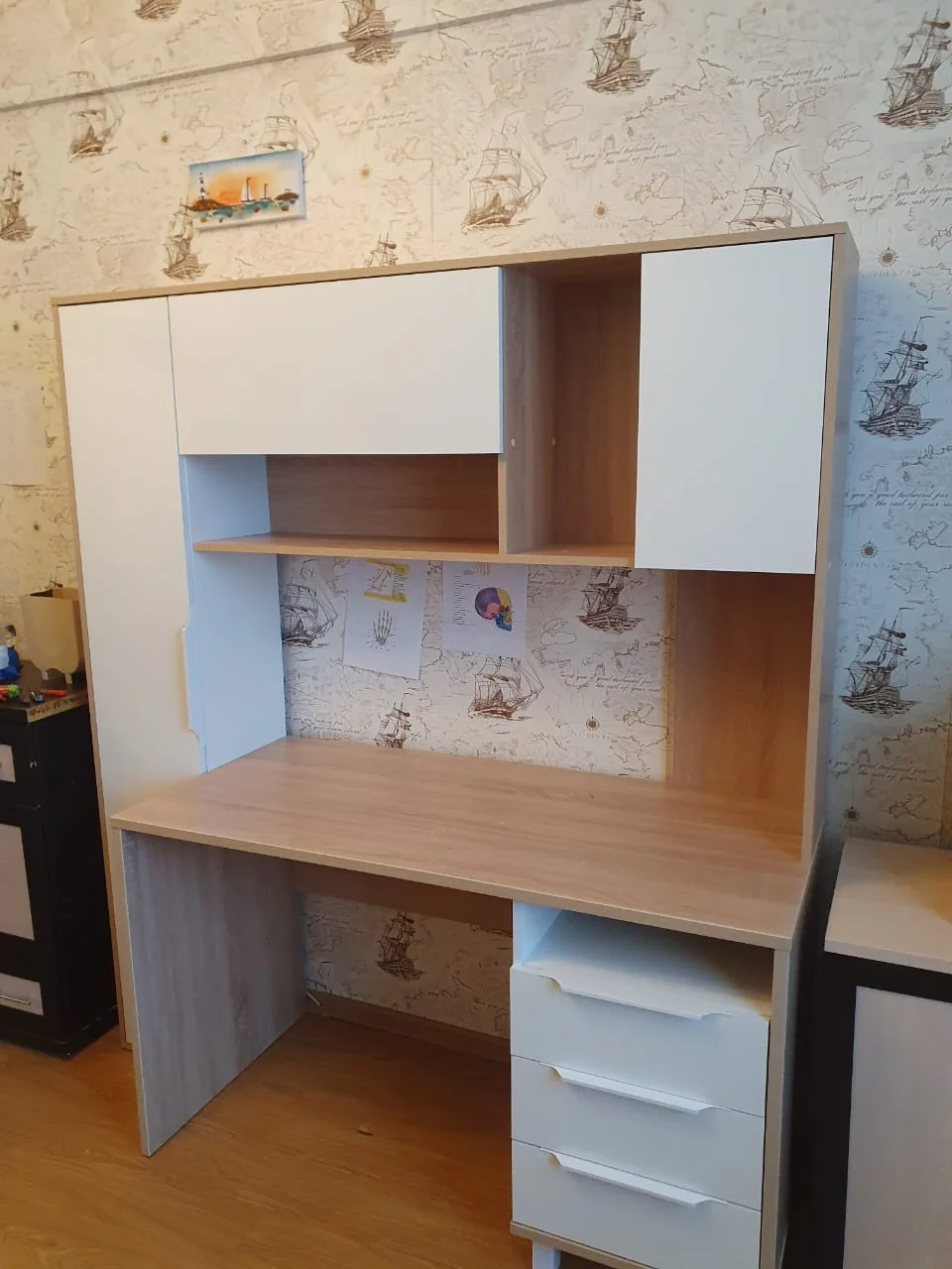 Быстрая доставка, качественная сборка. И во стол уже стоит. Очень удобный. Много места для хранения. Оригинальная модель. Всё супер. Спасибо сборщику. Руслану наверно.