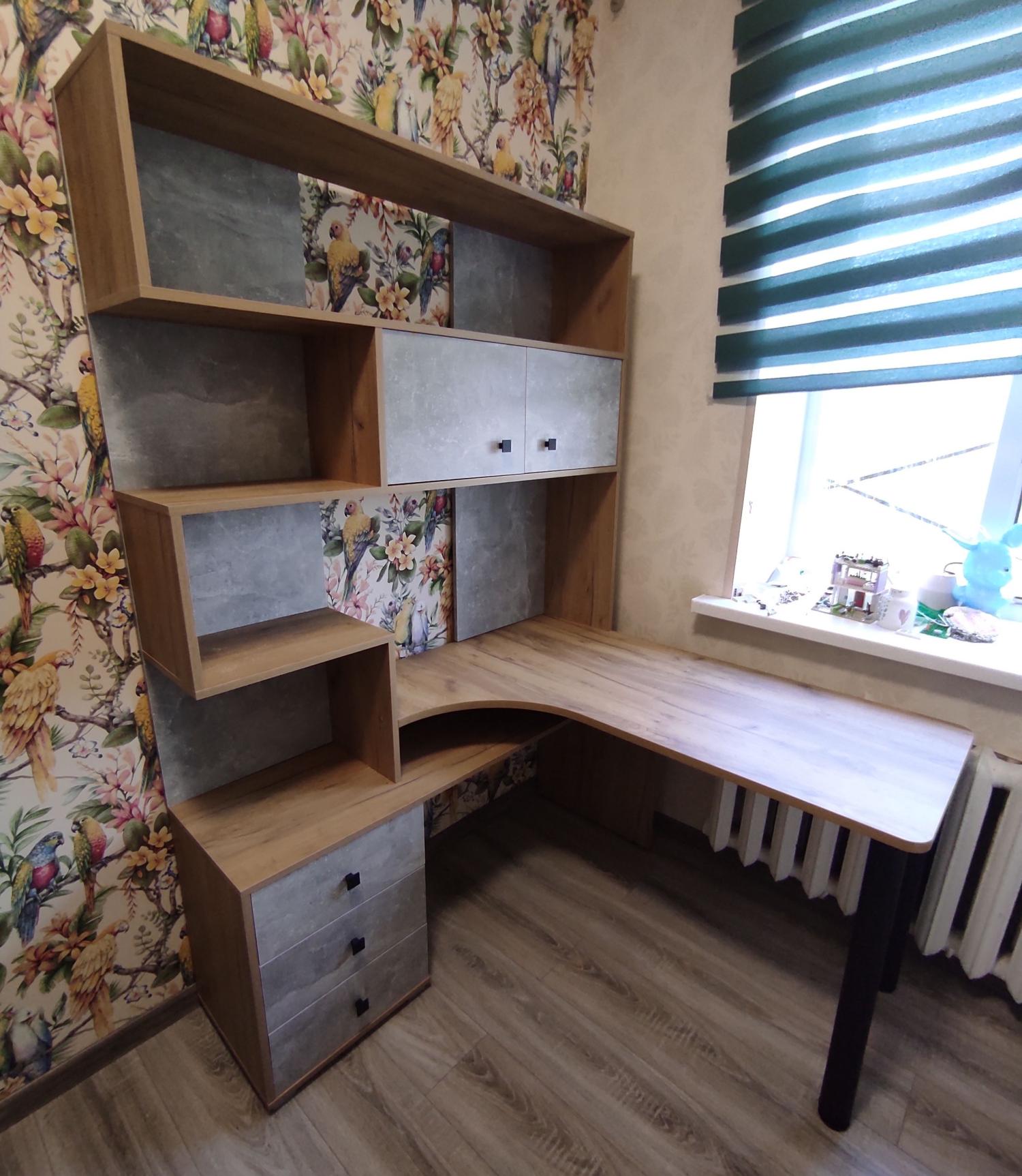 Отличное приобретение! Замечательный компьютерный стол. Функциональный, удобный, практичный. Немаркий цвет, интересный дизайн. Качество мебели и фурнитуры отличное. Спасибо за быструю доставку и сборку.