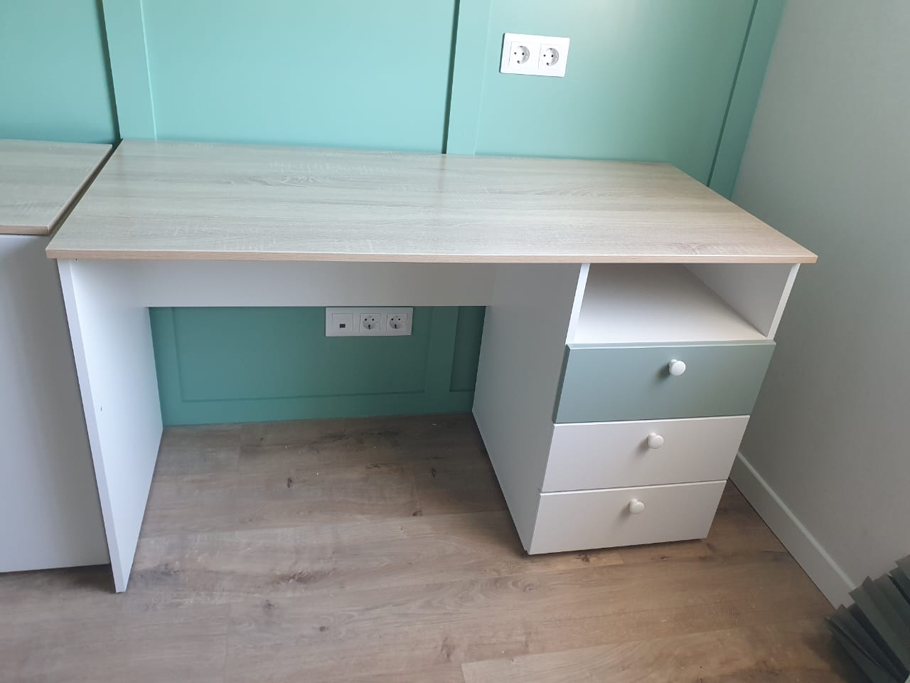 НМ 041.40 письменный стол Банни белый/дуб сонома/макарун |