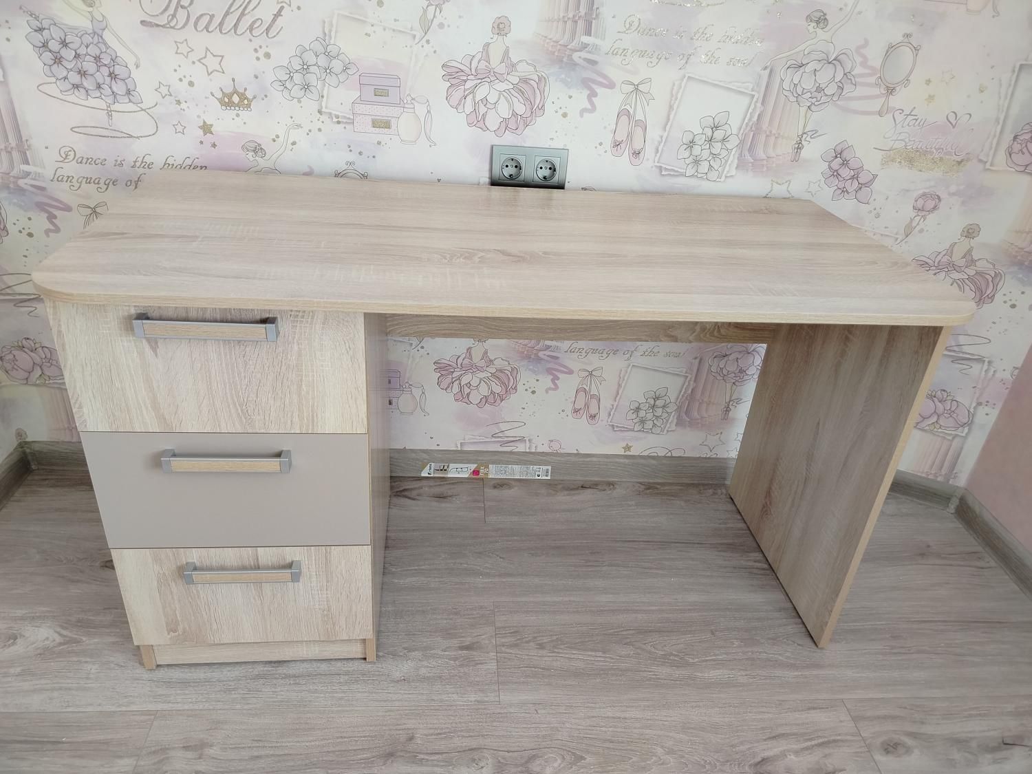 Стол письменный НМ 011.47-01 Акварель Капучино легко создаст рабочее место в детской комнате. Стол выполняется по классической схеме с одной тумбой. Широкая столешница позволят комфортно работать за столом. Встроенная тумба оснащена тремя выдвижными ящиками для хранения бумаг, папок или других принадлежностей. Модель выполняется из качественных материалов в стильном сочетании цветов.