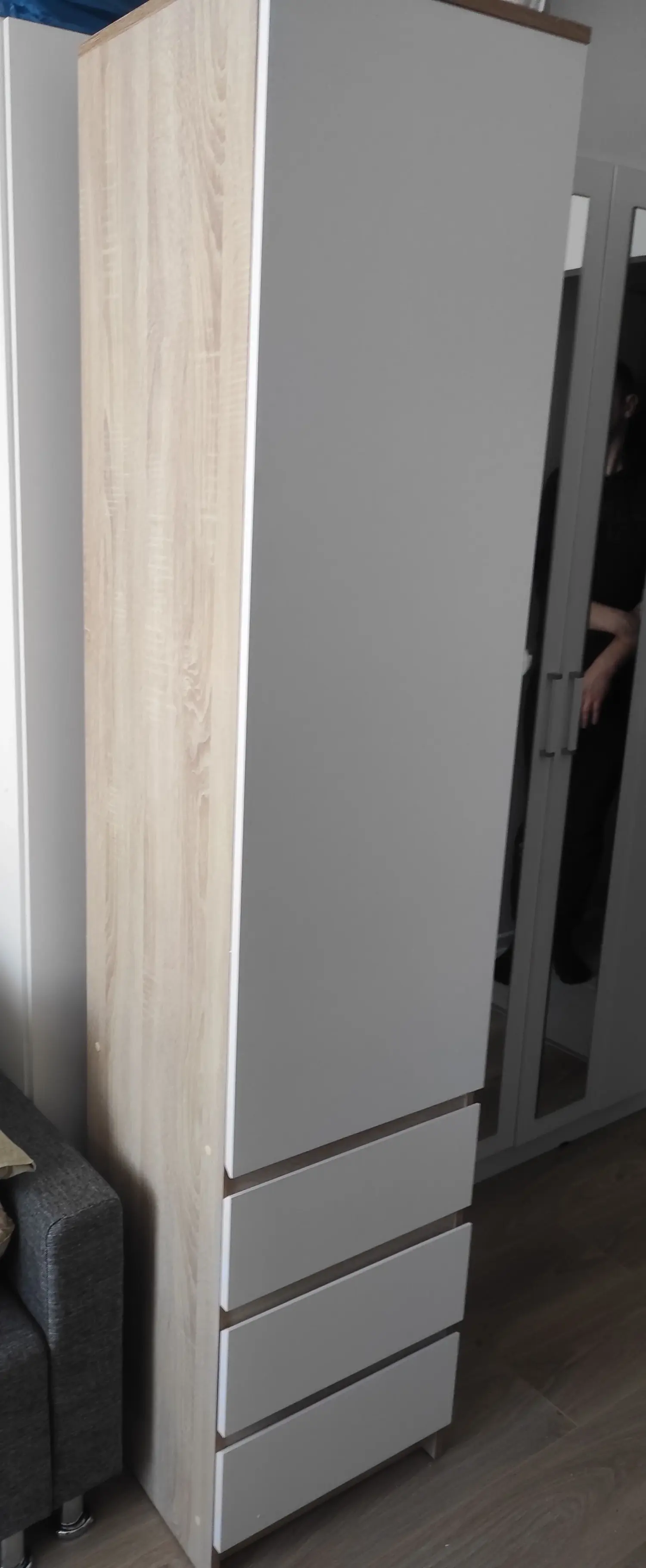 Шкаф Сидней 13.200-станет отличным дополнением для вашей гостиной. Главная особенность-черная вставка между фасадами. Шкаф имеет 6 вместительных полок, которые пригодятся для хранения белья, одежды и прочего. Распашная дверь оснащена доводчиками, а это значит, что ее закрывание будет плавным и бесшумным, открывается за край.