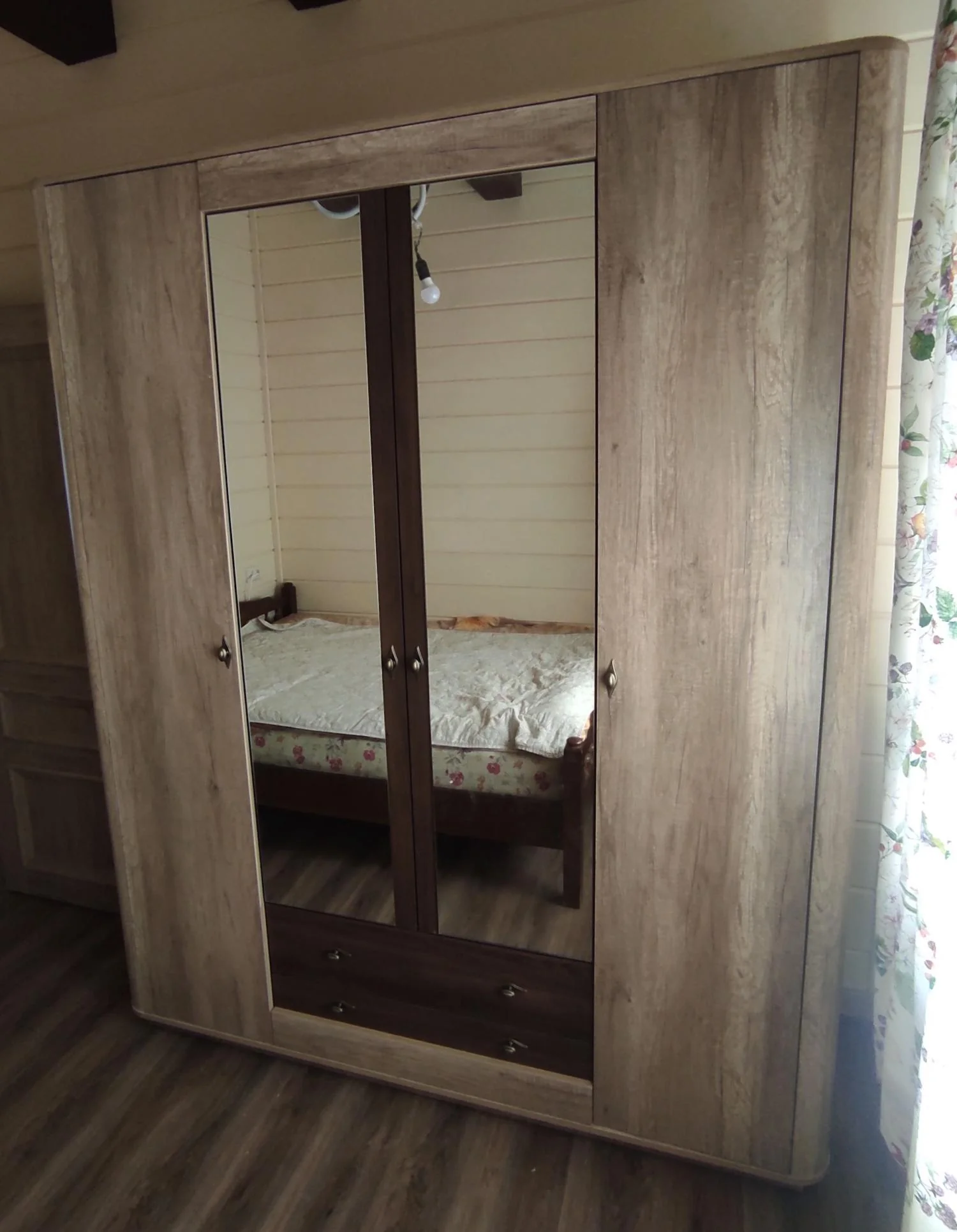 Большой вместительный шкаф с зеркалами из серии Фантазия. Шкаф оснащен полками, штангой для одежды и удобными выдвижными ящиками на шариковых направляющих. - Доставка по Москве в пределах МКАД - 895 руб.