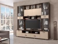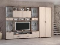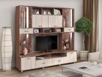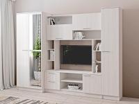 Аллегро 8 гостиная / Бетон светлый/Камень темный светлый станет основой интерьера гостиной комнаты.Конструкция комбинированная с тв тумбой, открытыми полками и пеналом.