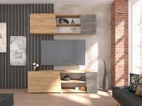 Гостиная Аллегро 10 компл. 1 / Дуб Крафт золотой/Камень темный - яркий и современный комплект для гостиной комнаты.Конструкция с тумбой для тв и шкафами.