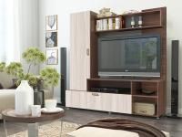 Конструкция с настенным шкафом, тумбой для тв и витриной..