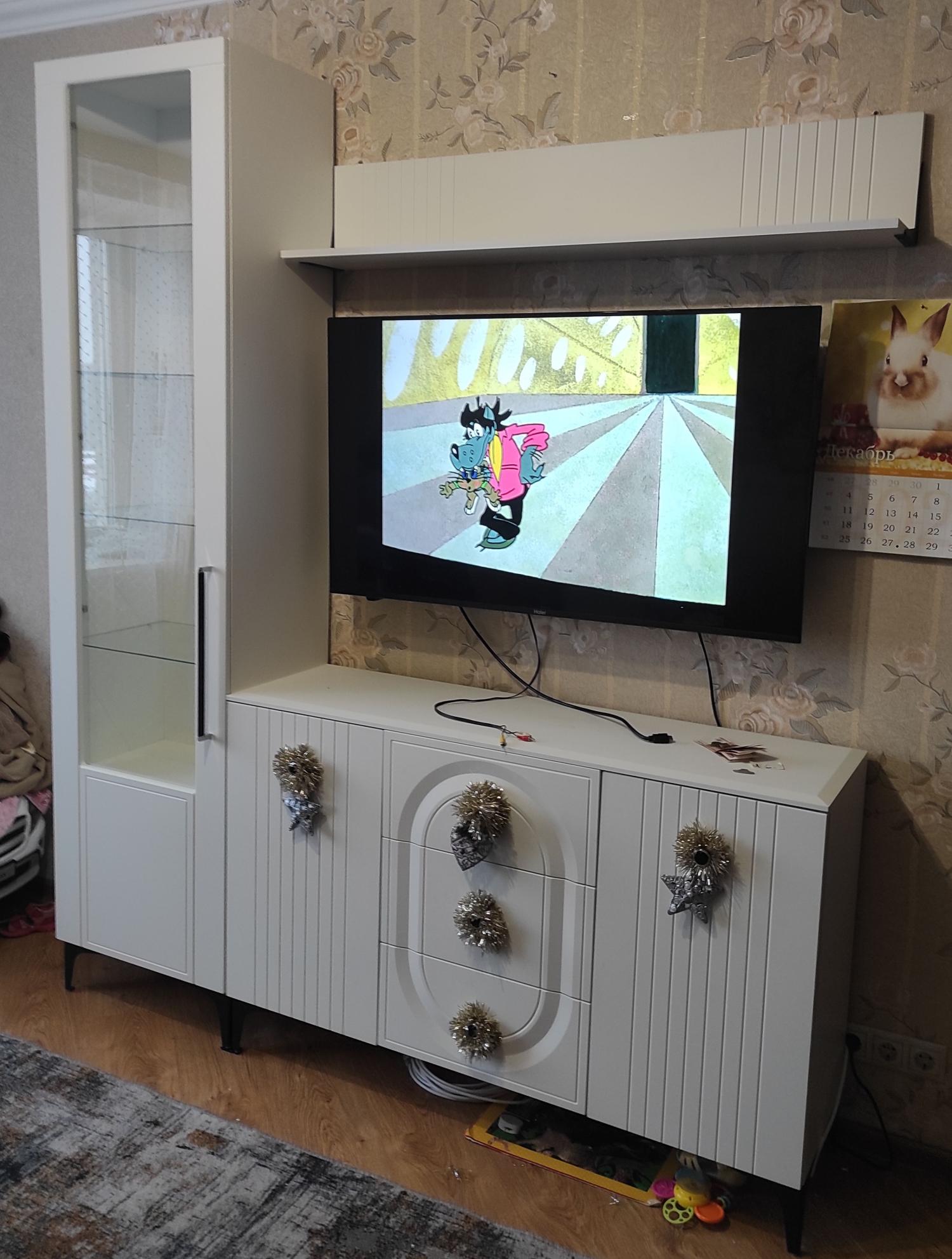 Гостиная Валенсия 4 Белый - компактный набор гостиной мебели. Гарнитур обеспечит размещение большого современного телевизора.