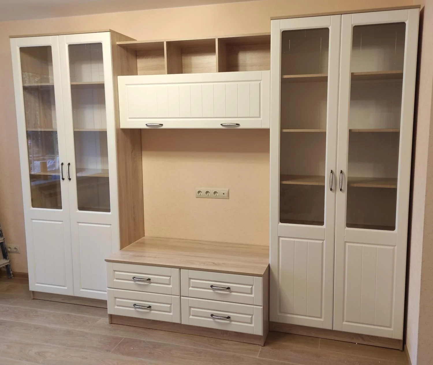 Гостиная Оливия 1 Дуб Сонома/белое дерево - это современный гарнитур, который подойдет для любой комнаты. Модель имеет современный внешний вид за счет комбинированной расцветки и стильных фасадов из МДФ.