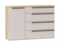 Конструкция с 2-я выдвижными ящиками и 2-я секциями с полками и дверками.