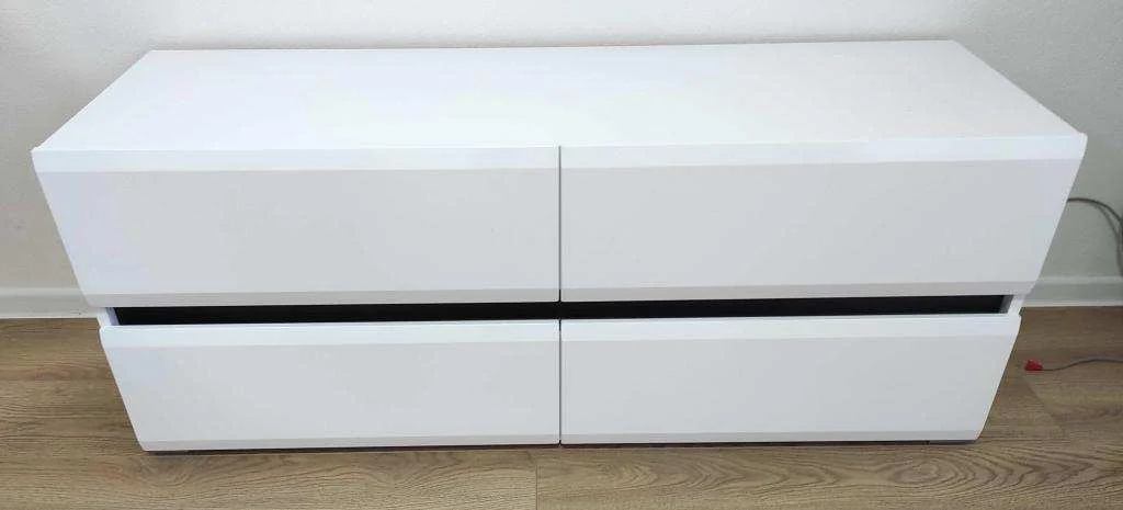 Тумба под ТВ 13.63 Сидней-отлично впишется в вашу гостиную современного стиля. Тумба имеет 4 выдвижных ящика, где можно хранить журналы, документы и прочее. Главная особенность-черная вставка между фасадами. Фурнитура: шариковые направляющие полного выдвижения. - Доставка по Москве в пределах МКАД - 895 руб.