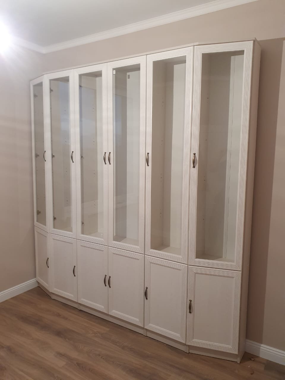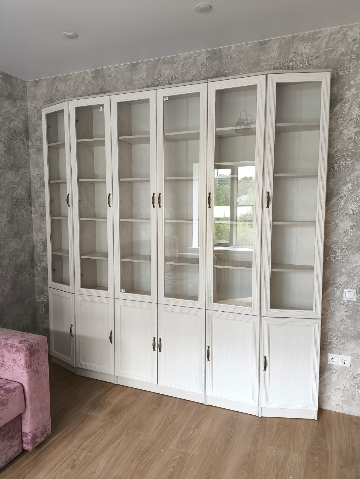 Библиотека МС-1 Оливия отлично впишется в вашу квартиру за счет своей изысканности и элегантности. Комплект состоит из семи шкафов. Данная комплектация позволит разместить все необходимое для работы за сплошными дверцами внизу, а на верхних полках за стеклянными дверями вы можете расставить книги и предметы декора.