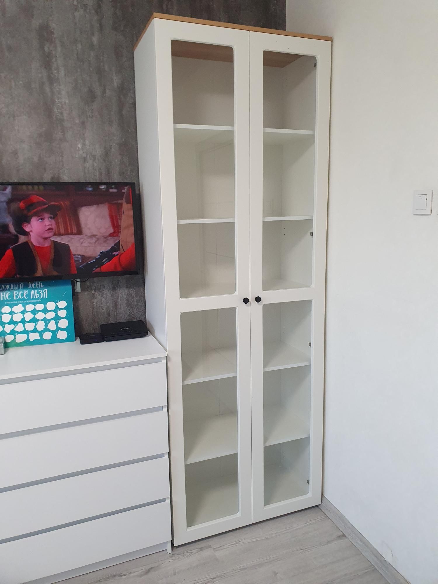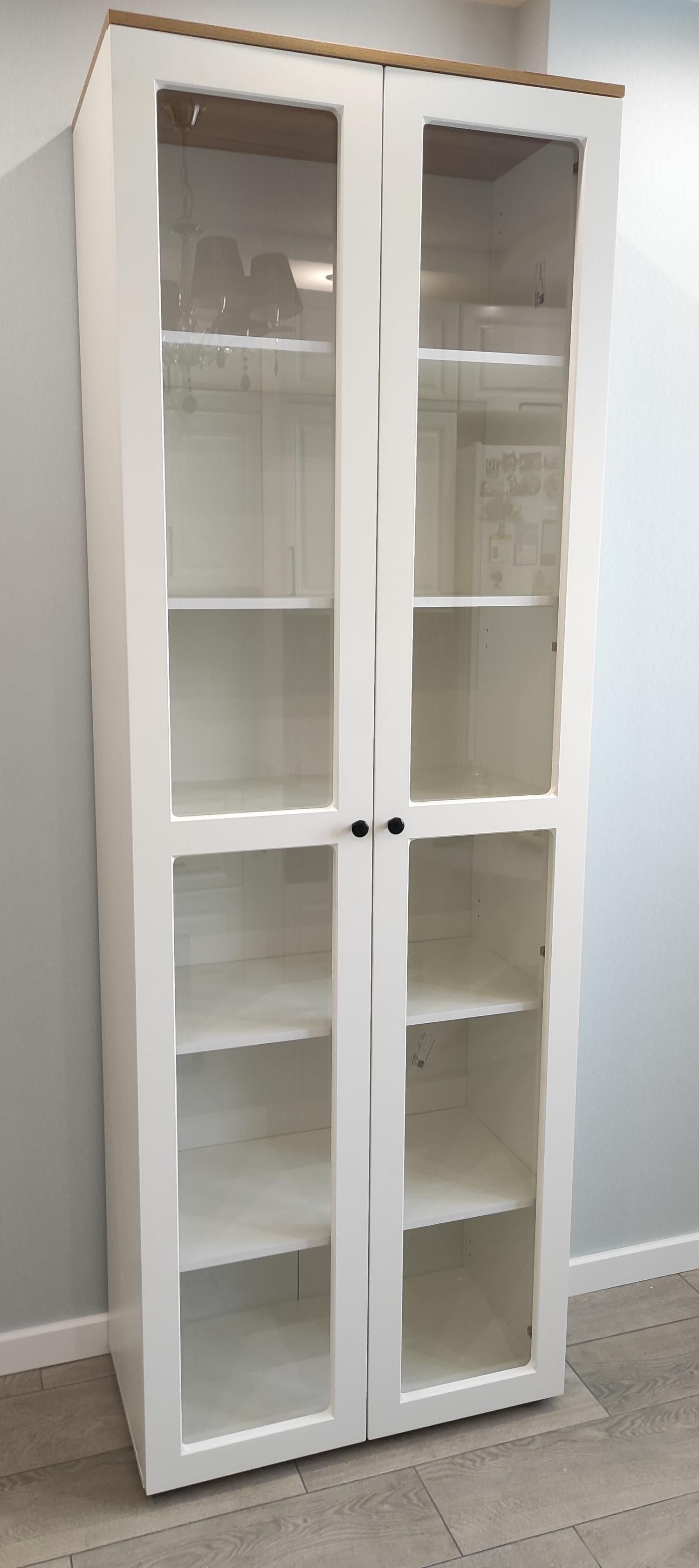 Остин Шкаф-витрина 16.394.02 белый/дуб золотой сделает интерьер уютным и красивым.Конструкция с 2-я распашными дверцами со стеклянными вставками.
