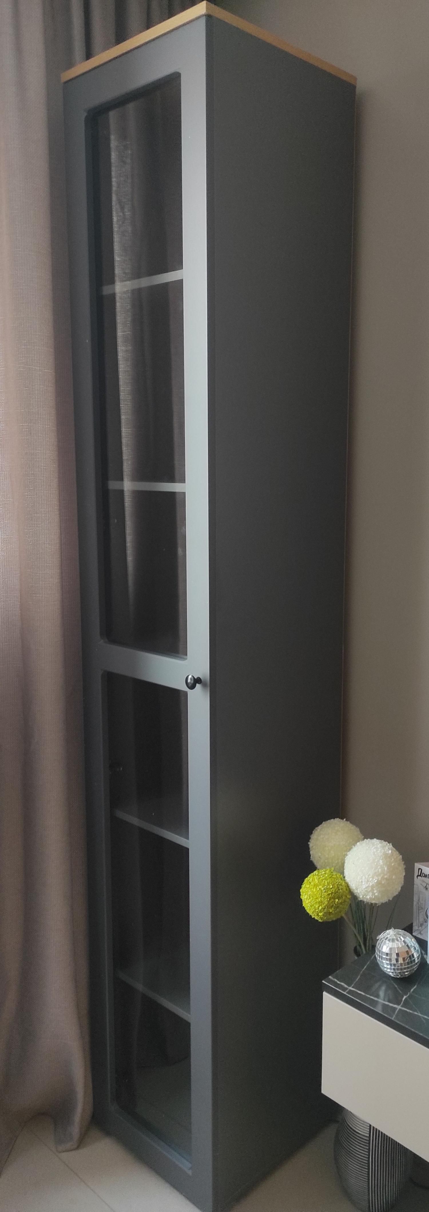 Остин Шкаф-витрина 16.394.03 графит/дуб золотой сделает интерьер уютным и красивым.Конструкция с распашной дверцей со стеклянной вставкой.