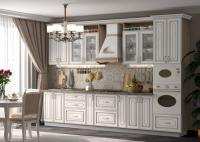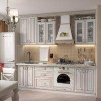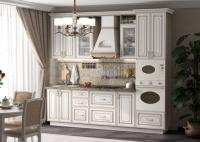 Компактный кухонный гарнитур Анжелика 2300 подойдет для небольшой кухни. Фасад выполнен из МДФ, покрытый пленкой ПВХ с последующим патированием по итальянской технологии и нанесением лака. Корпус ЛДСП 16 мм. Ручка металлическая с керамической вставкой. Цвет ручки бронза, размер 96 мм. Ножки регулируются по высоте 100 мм.Высота стола со столешницей 860 мм