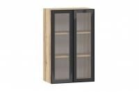 Полка оснащена 2-я распашными дверцами со стеклянными вставками.