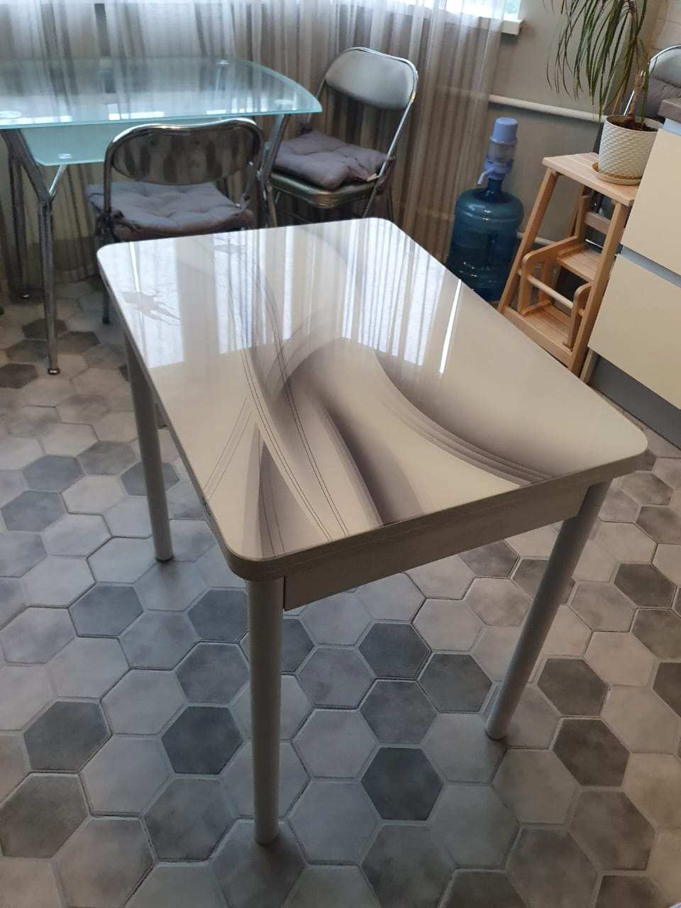Столешница поворотно-раскладная с фотопечатью. ЛДСП + закаленное стекло.