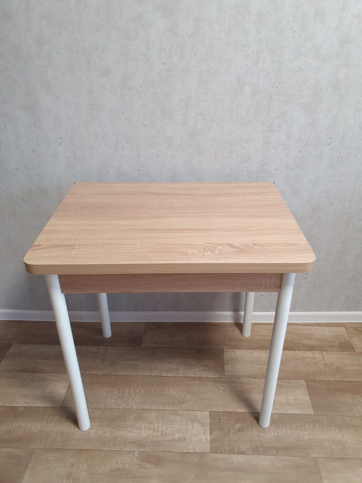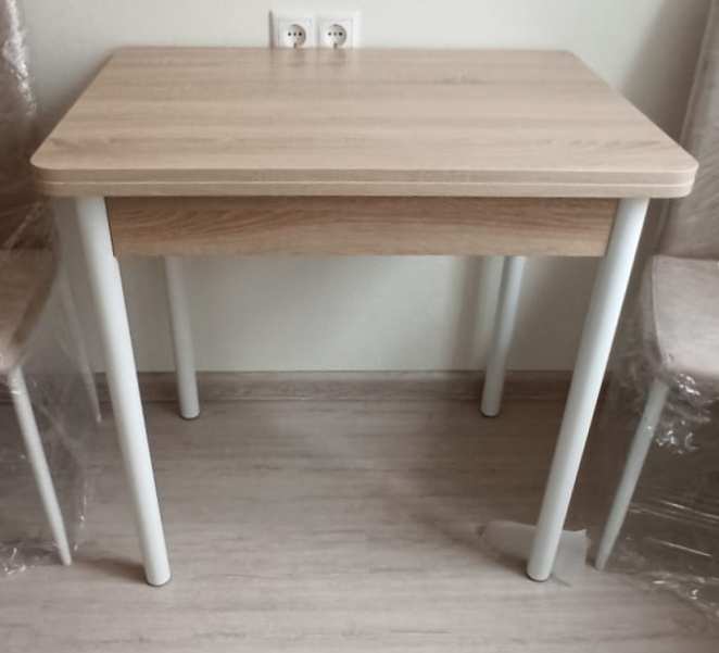 Эко 80х60 стол обеденный раскладной / Дуб сонома/белый прекрасно подойдет для небольшого помещения.Стол выполнен на металлических опорах d-42 мм.