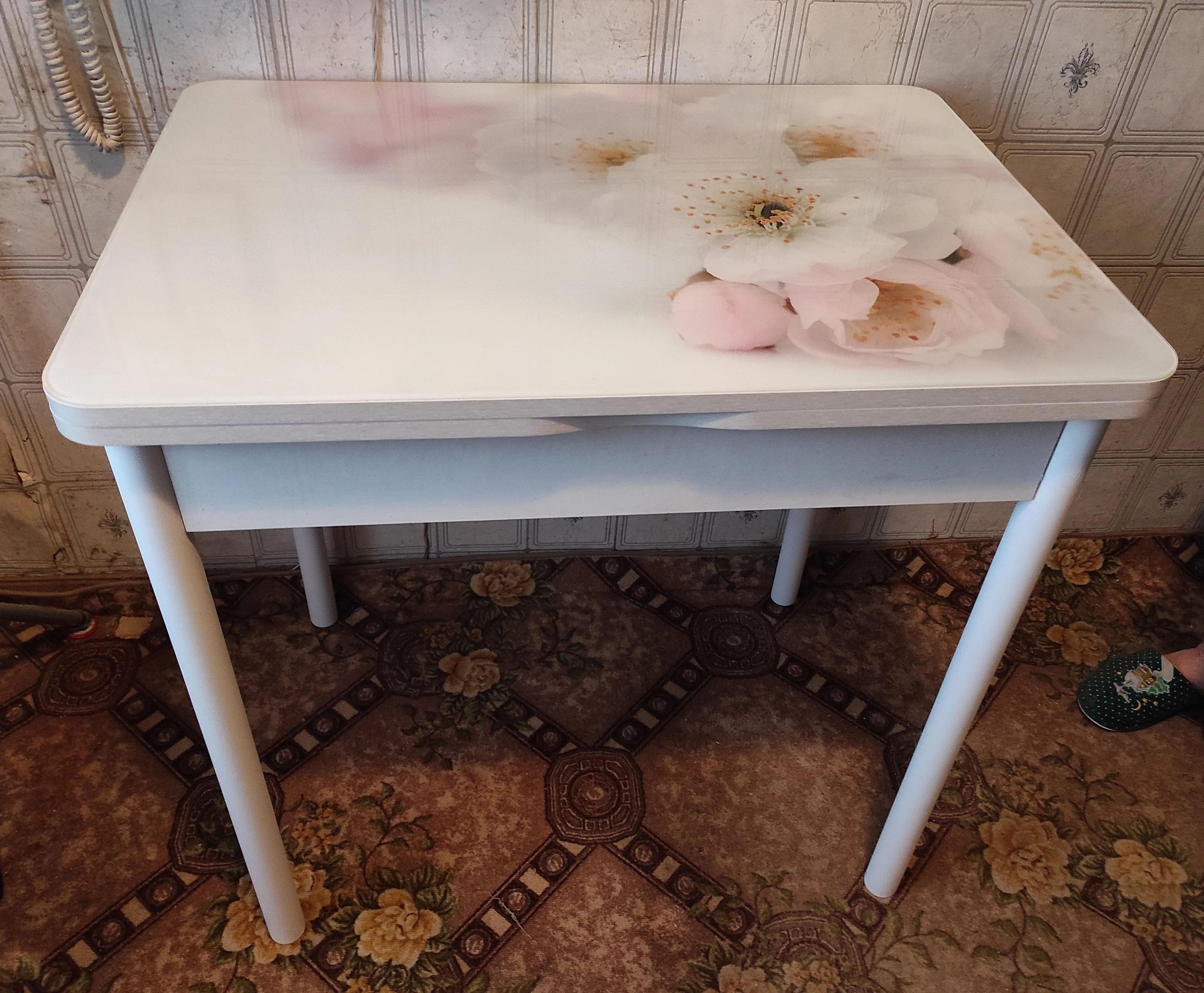 Столешница поворотно-раскладная с фотопечатью. ЛДСП + закаленное стекло.