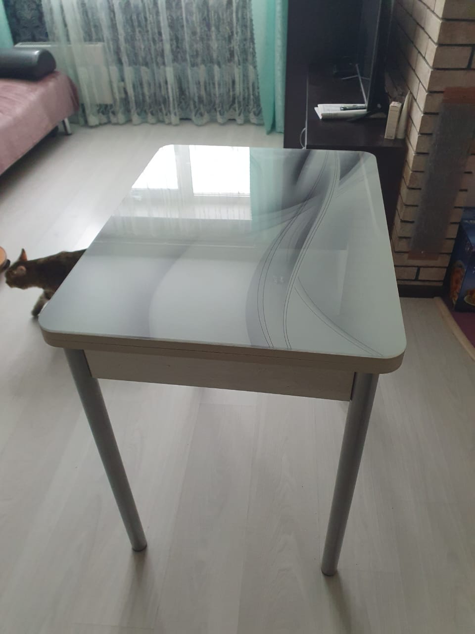 Столешница поворотно-раскладная с фотопечатью. ЛДСП + закаленное стекло.
