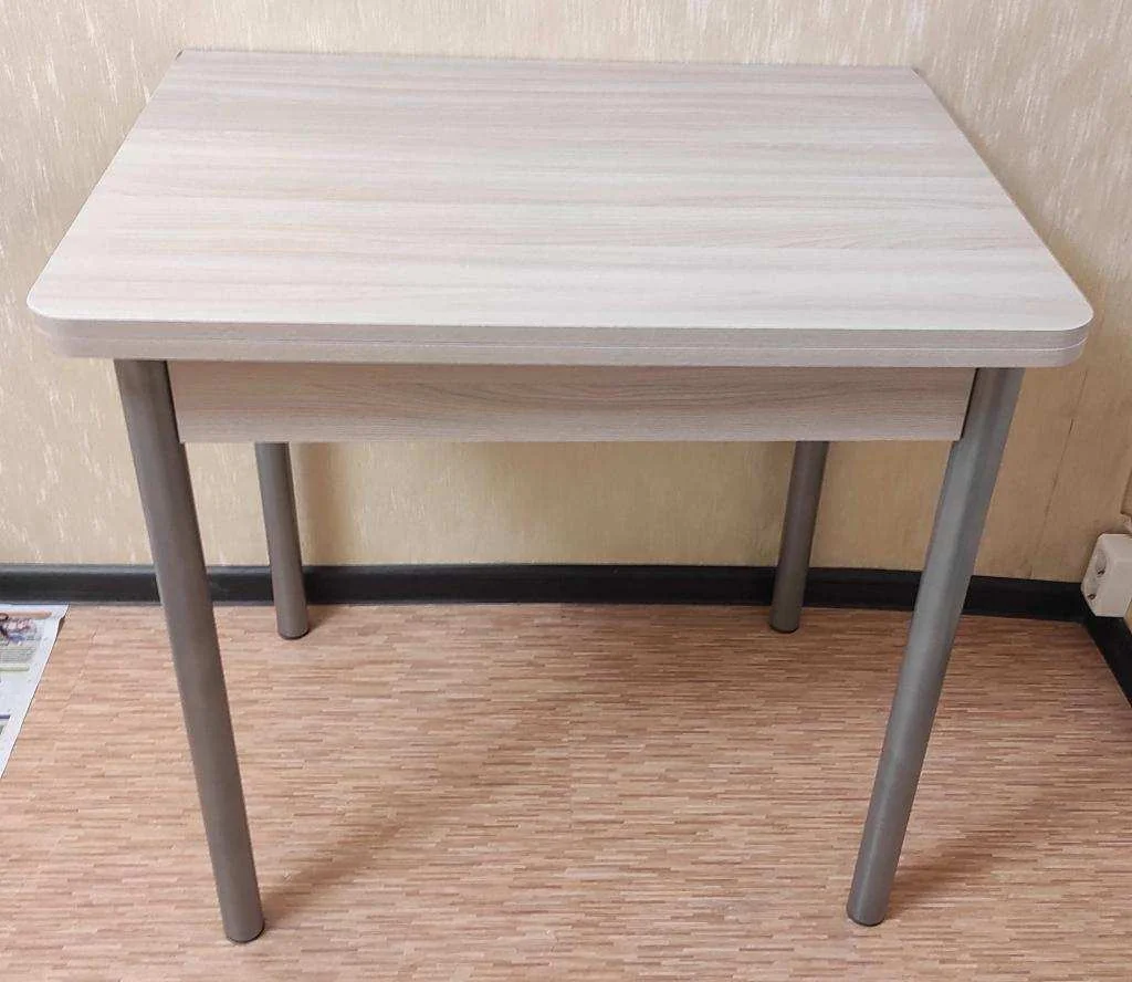 Эко 80х60 стол обеденный раскладной / Ясень светлый/металлик прекрасно подойдет для небольшого помещения.Стол выполнен на металлических опорах d-42 мм.