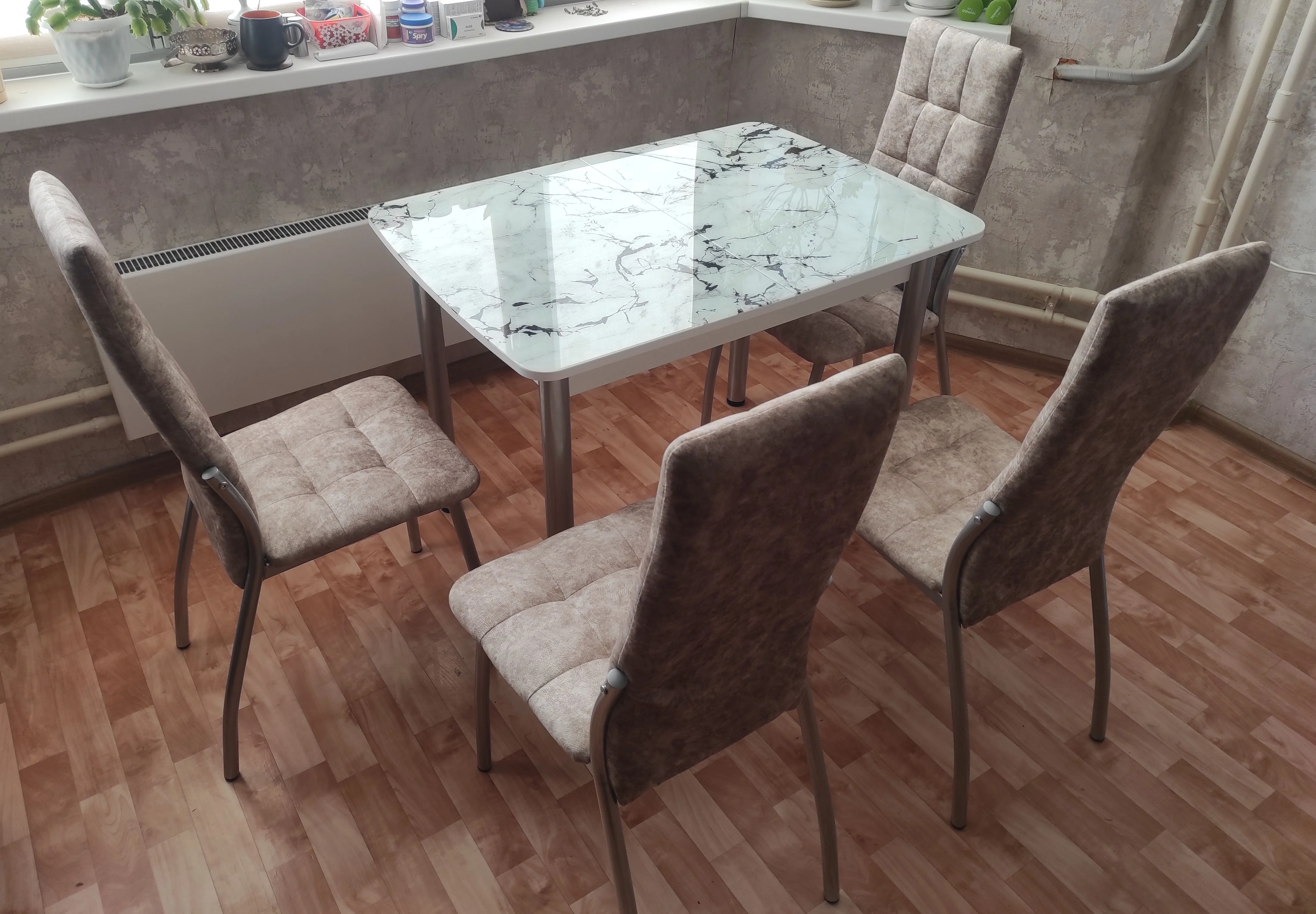Столешница раздвижная с фотопечатью и стеклянным покрытием.