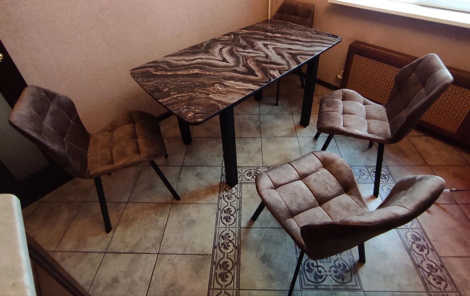 Столешница раздвижная с фотопечатью и стеклянным покрытием.