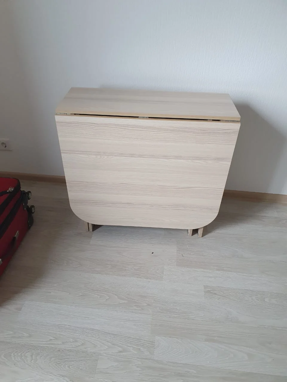 Стол-книжка - это удобный, компактный обеденный элемент. В разложенном виде стол может разместить до 8 взрослых человек. В сложенном виде стол занимает минимум пространства и легко хранится в любом углу. Столешница стола изготовлена из термопластика.