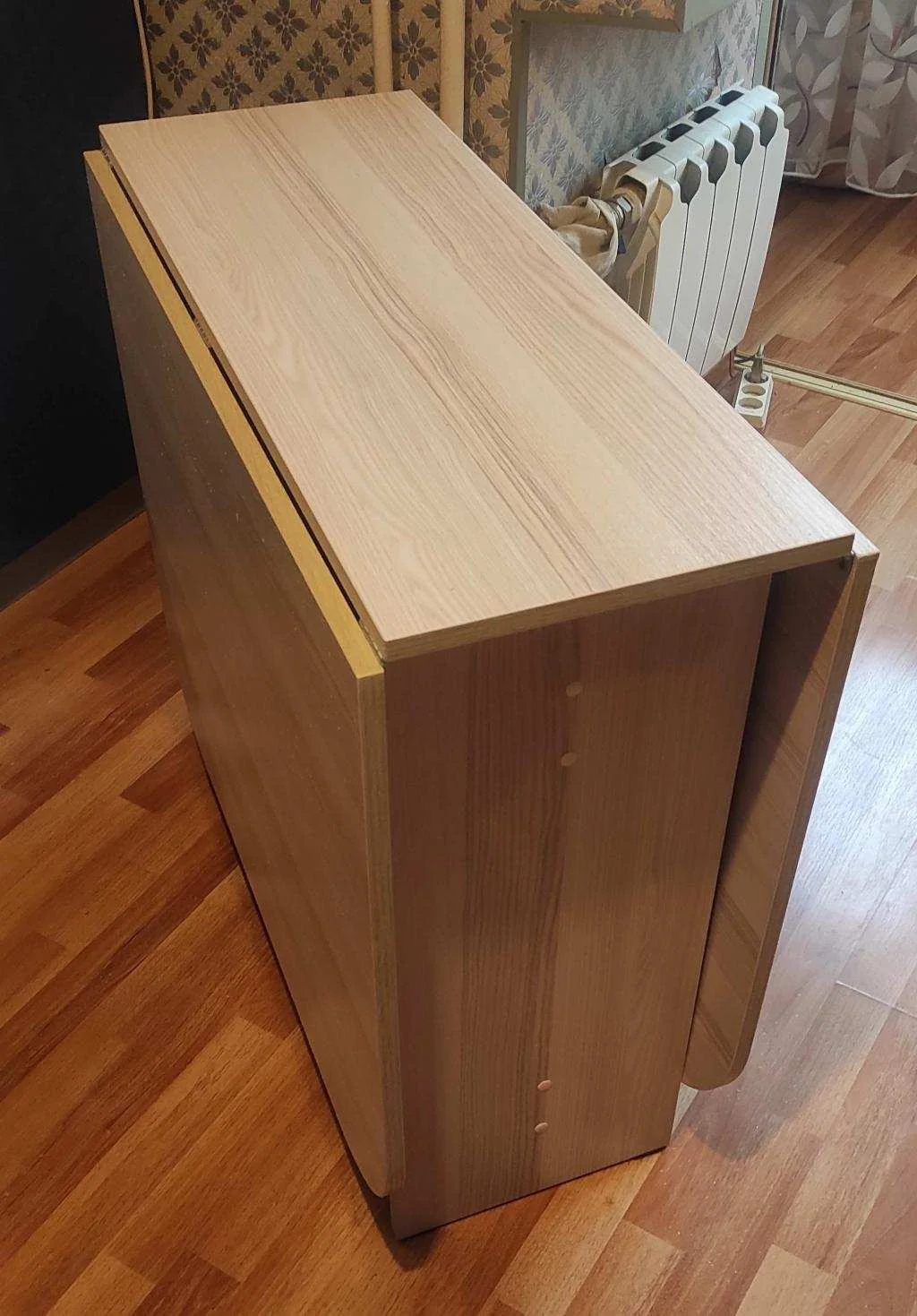 Размеры стола: в сложенном виде Д350 х Ш800 мм; с одним сложенным крылом Д975 х Ш800 мм; в разложенном виде Д1600 х Ш800 мм