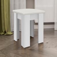 Изделие имеет компактные размеры, гнутые металлические ножки и круглое мягкое сидение.