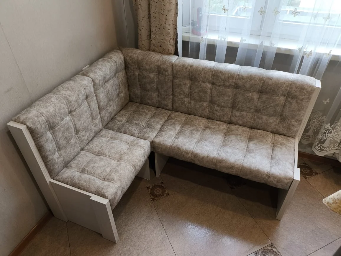 Сиденья и спинки мягкие с декором. Под сидением вместительные ящики для хранения.