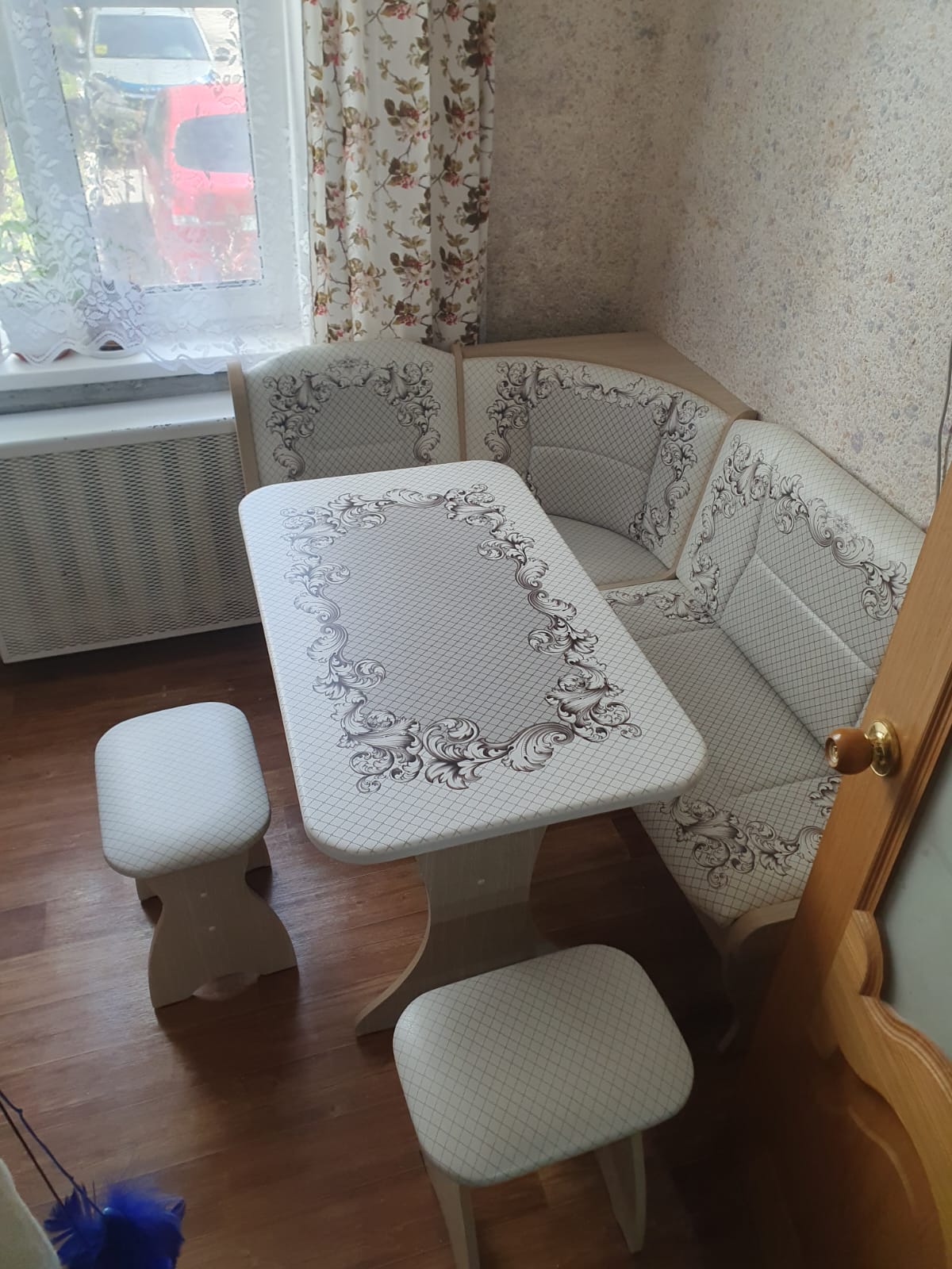 Кухонный набор Орхидея Автор комплектация: угловой диван, стол, 2 табурета