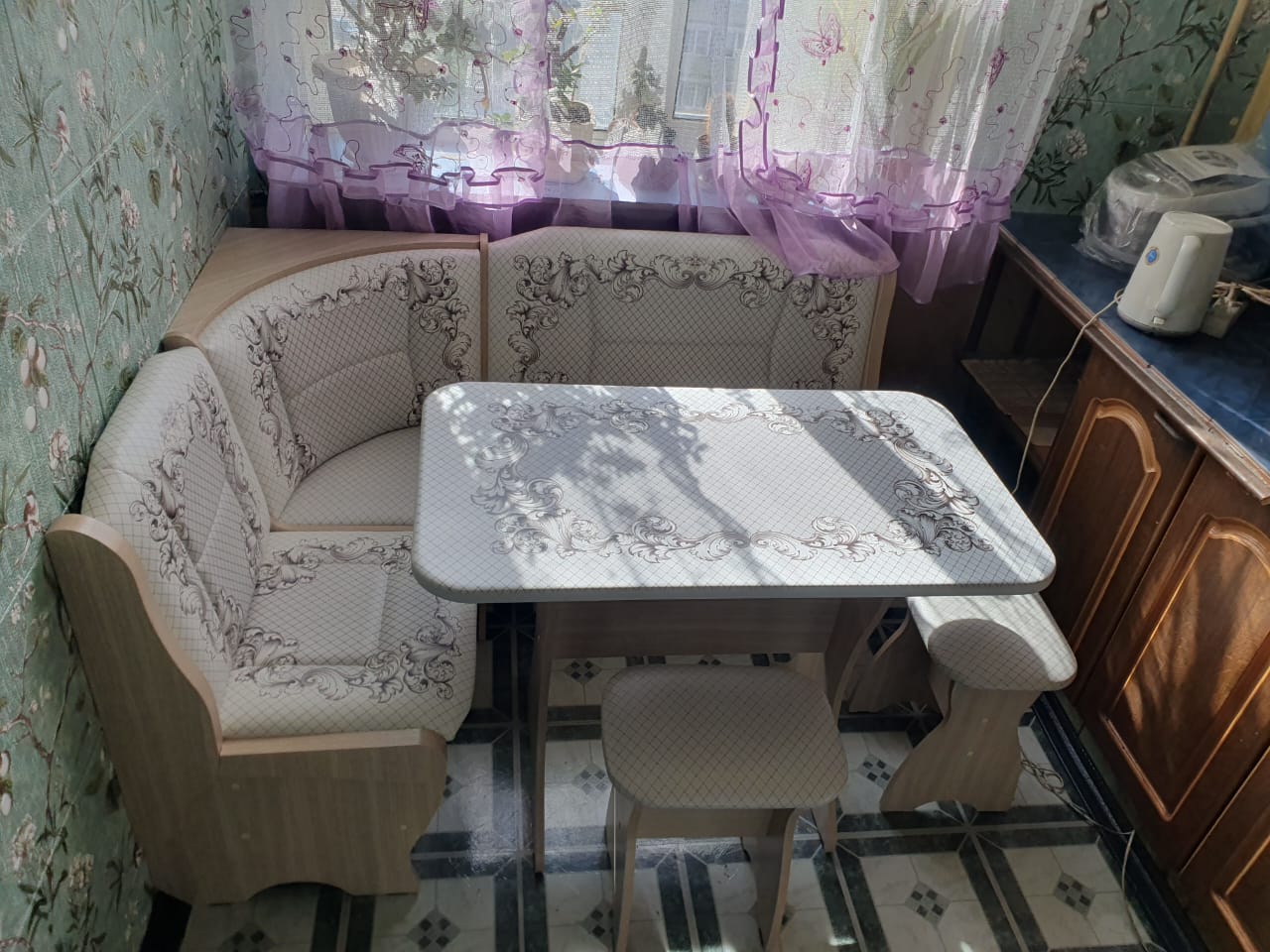 Кухонный угловой диван с 2 ящиками. Сборка возможна на любую сторону. Столешница стола пластиковая термостойкая.