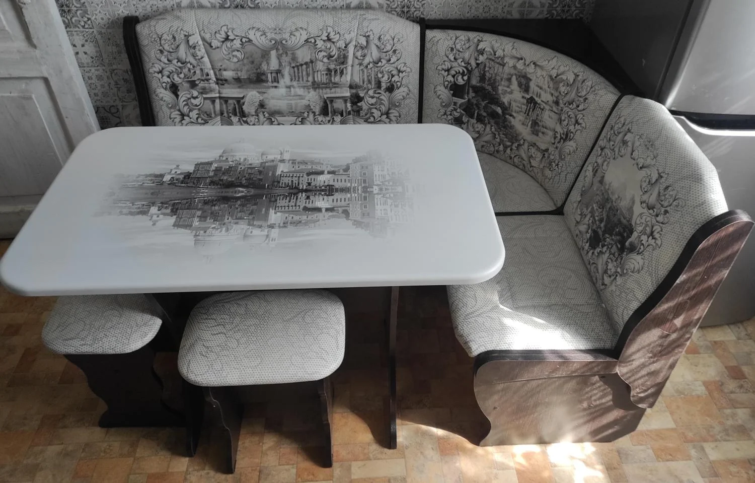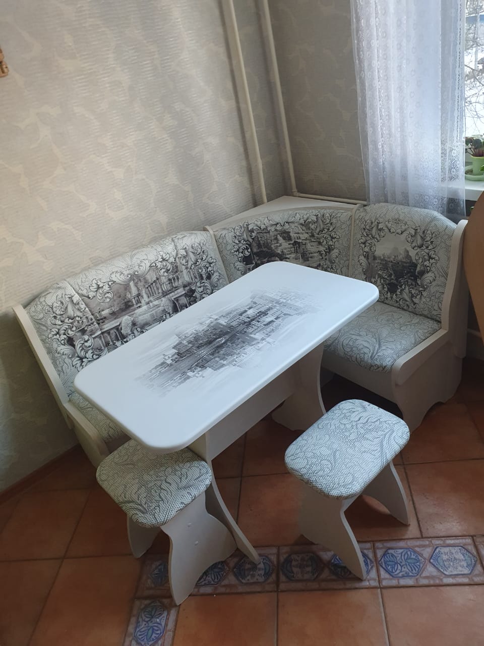 Кухонный набор Орхидея Автор комплектация: угловой диван, стол, 2 табурета