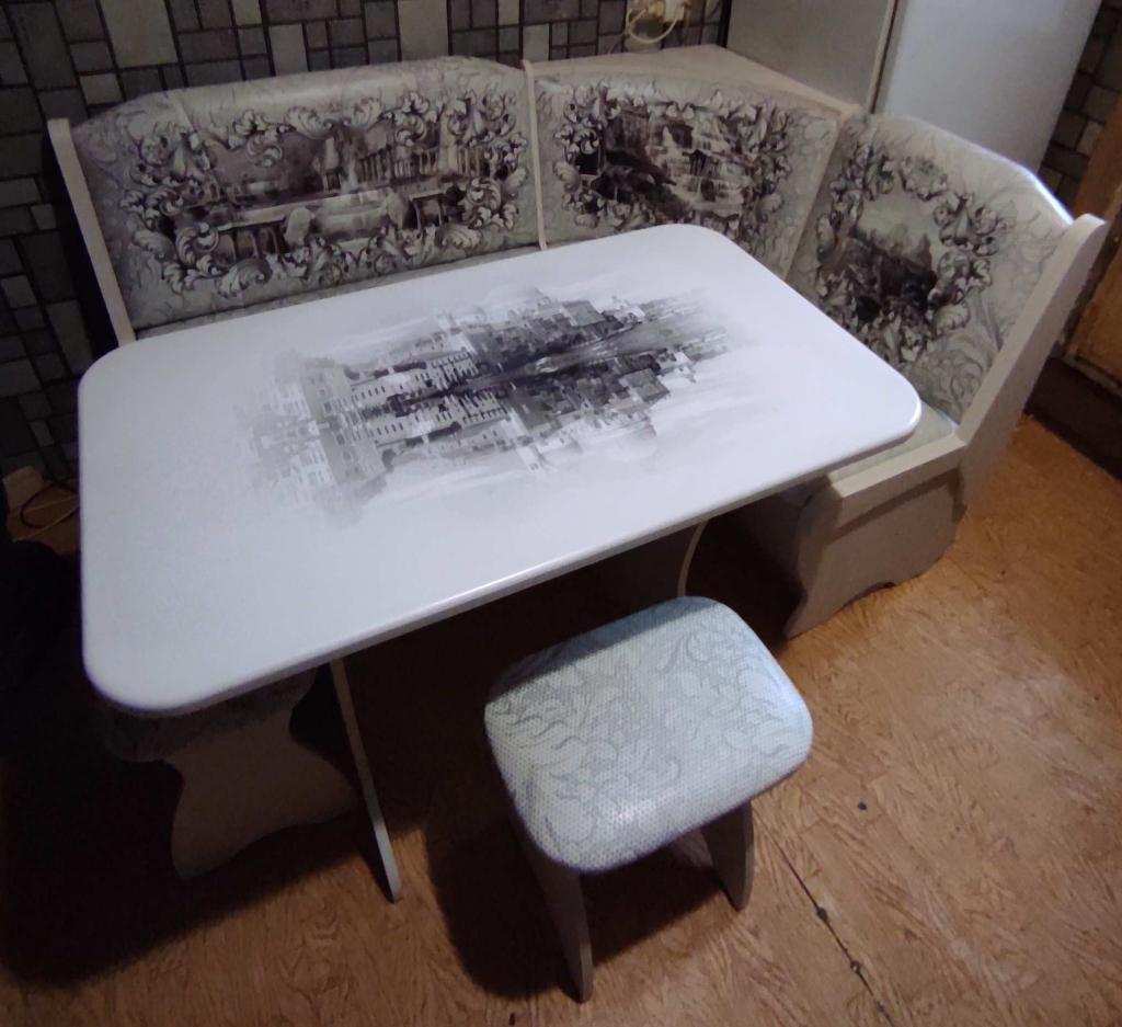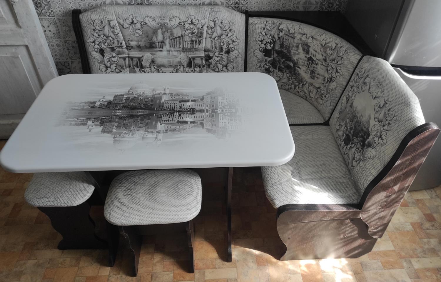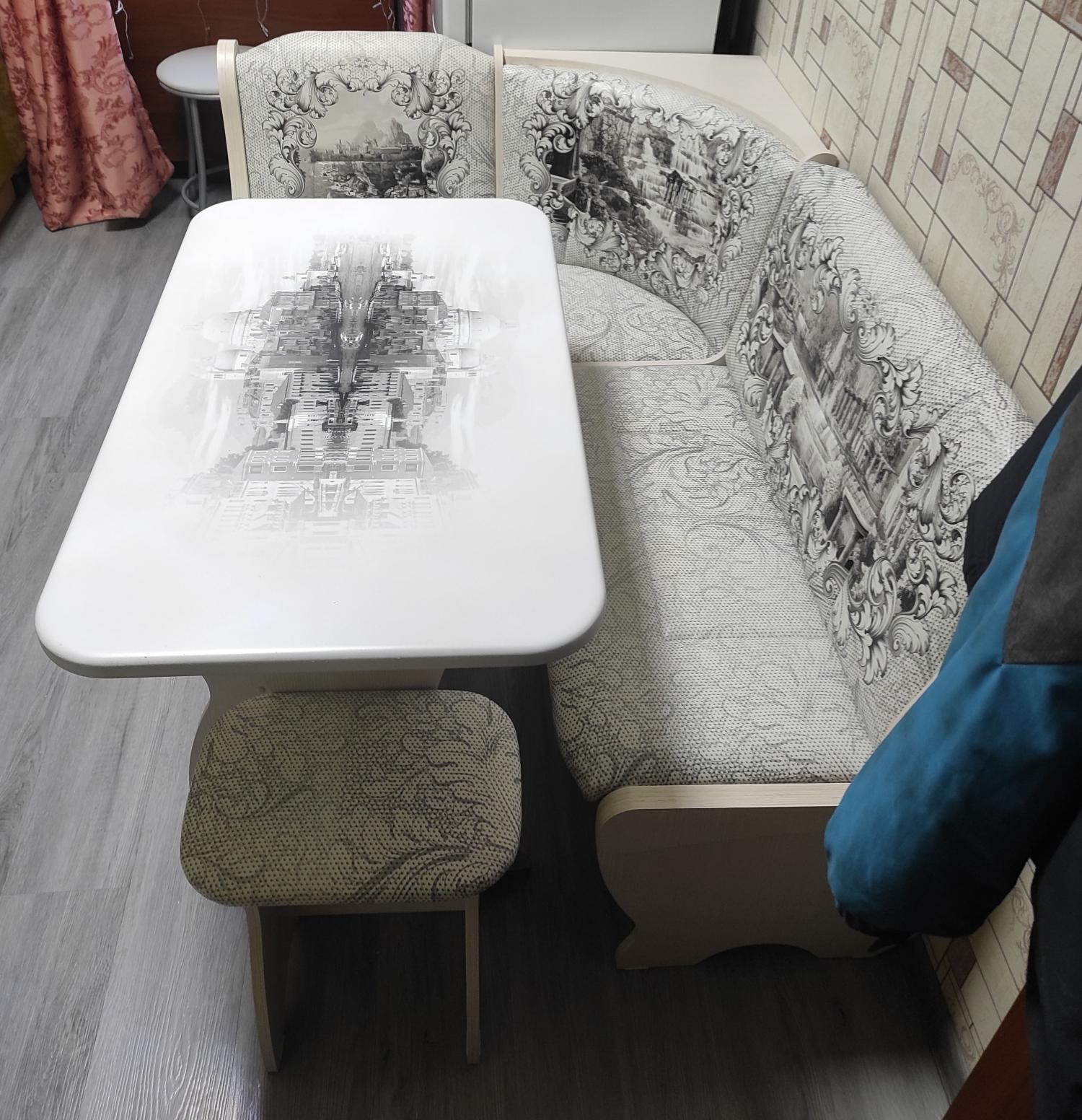 Кухонный угловой диван с 2 ящиками. Сборка возможна на любую сторону. Столешница стола пластиковая термостойкая.