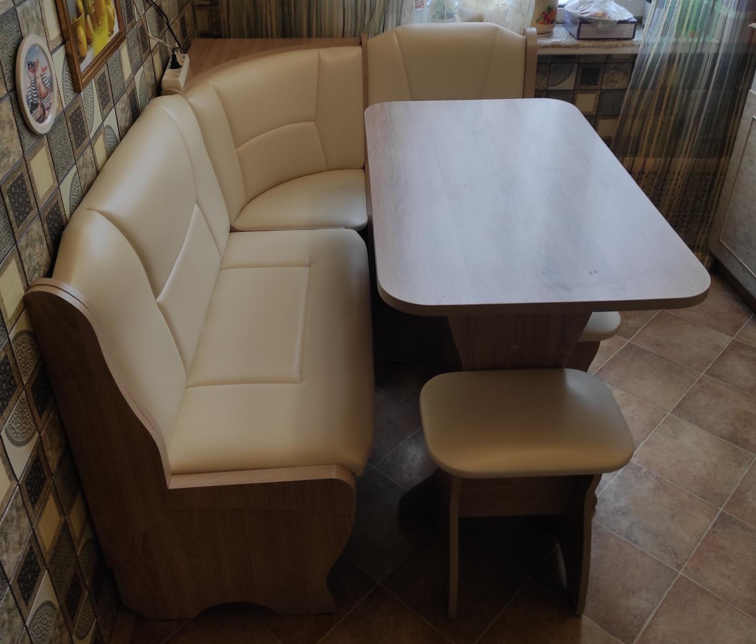 Замечательный кухонный уголок. Удобный и практичный, есть большие, вместительные ящики под сиденьями. Стол крепкий, табуреты устойчивые. Качество мебели и фурнитуры отличное. Спасибо за быструю доставку и сборку.