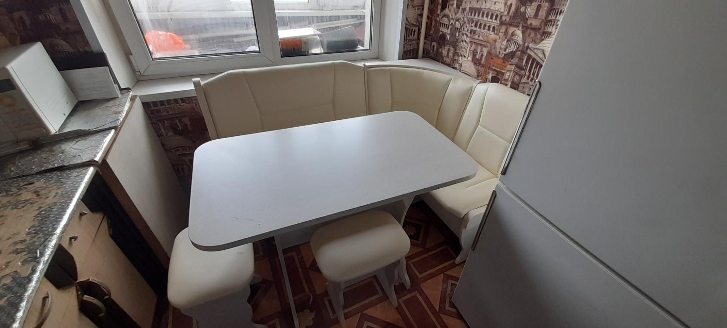 Кухонный угловой диван с 2 ящиками. Сборка возможна на любую сторону. Столешница стола пластиковая термостойкая.