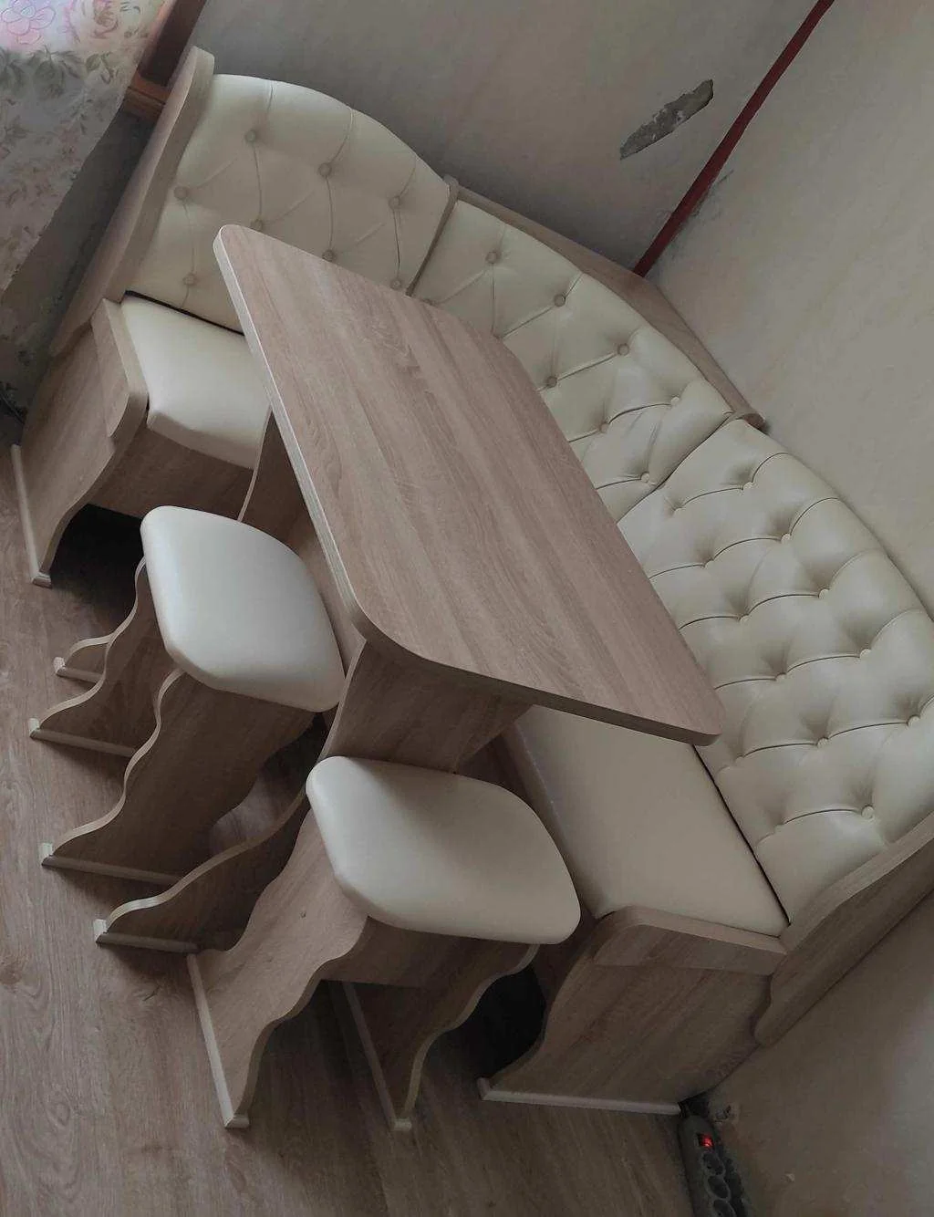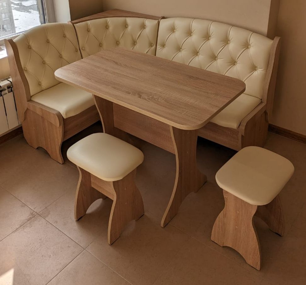 Кухонный угловой диван с 2 ящиками. Сборка возможна на любую сторону. Корпус изготовлен из ЛДСП, доступно несколько вариантов цветового решения. Столешница стола пластиковая термостойкая.