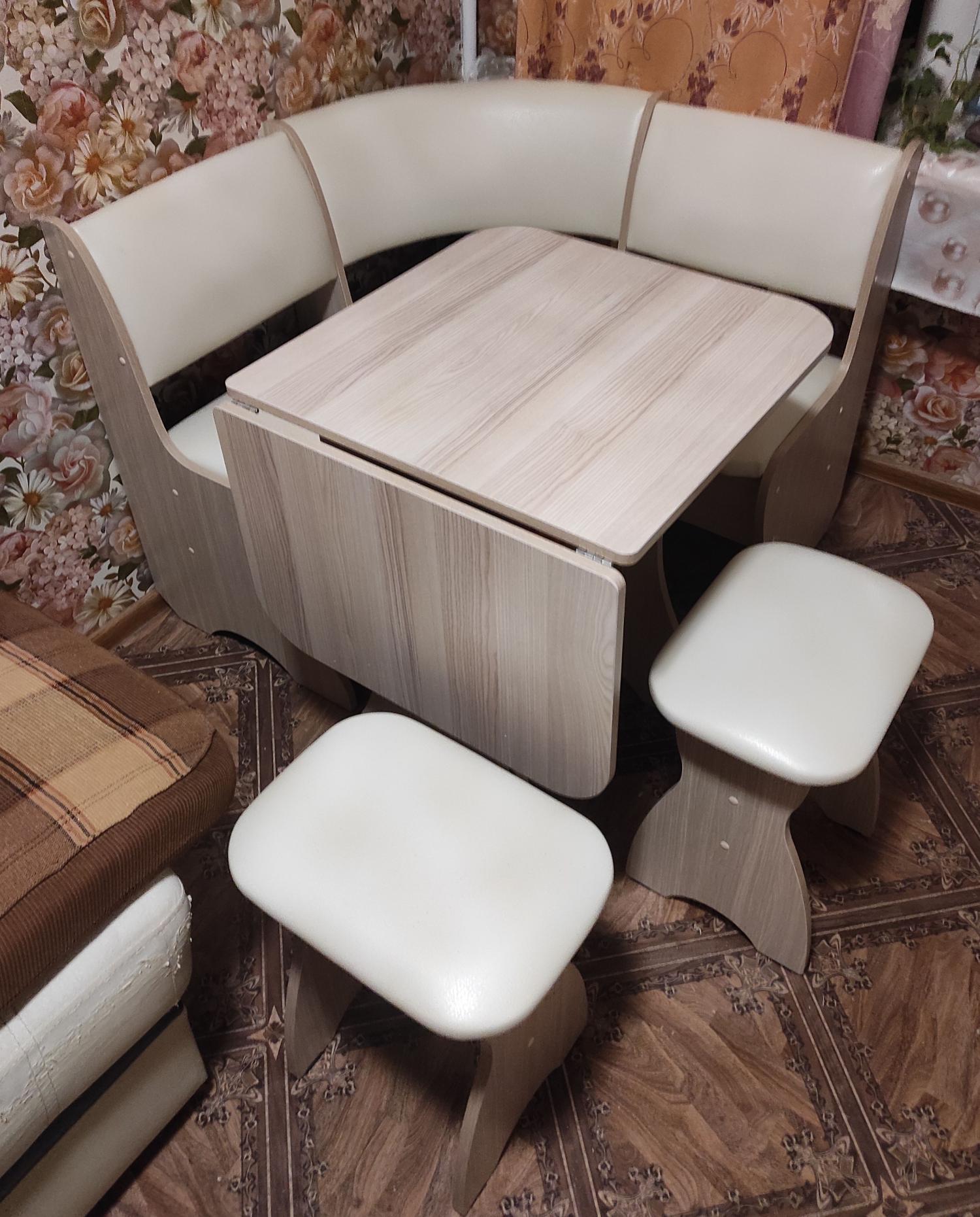 Удобный кухонный набор Тюльпан сделает Вашу кухню красивой и комфортной. Он удобен в пользовании, имеет мягкие сиденья и спинки, оборудован ящиками для хранения. В состав набора входят: уголок, стол и две табуретки с мягкими сиденьями. Стол выполнен с раскладной столешницей.Размеры кухонного уголка: Д1000 x Ш1000 х В840 мм