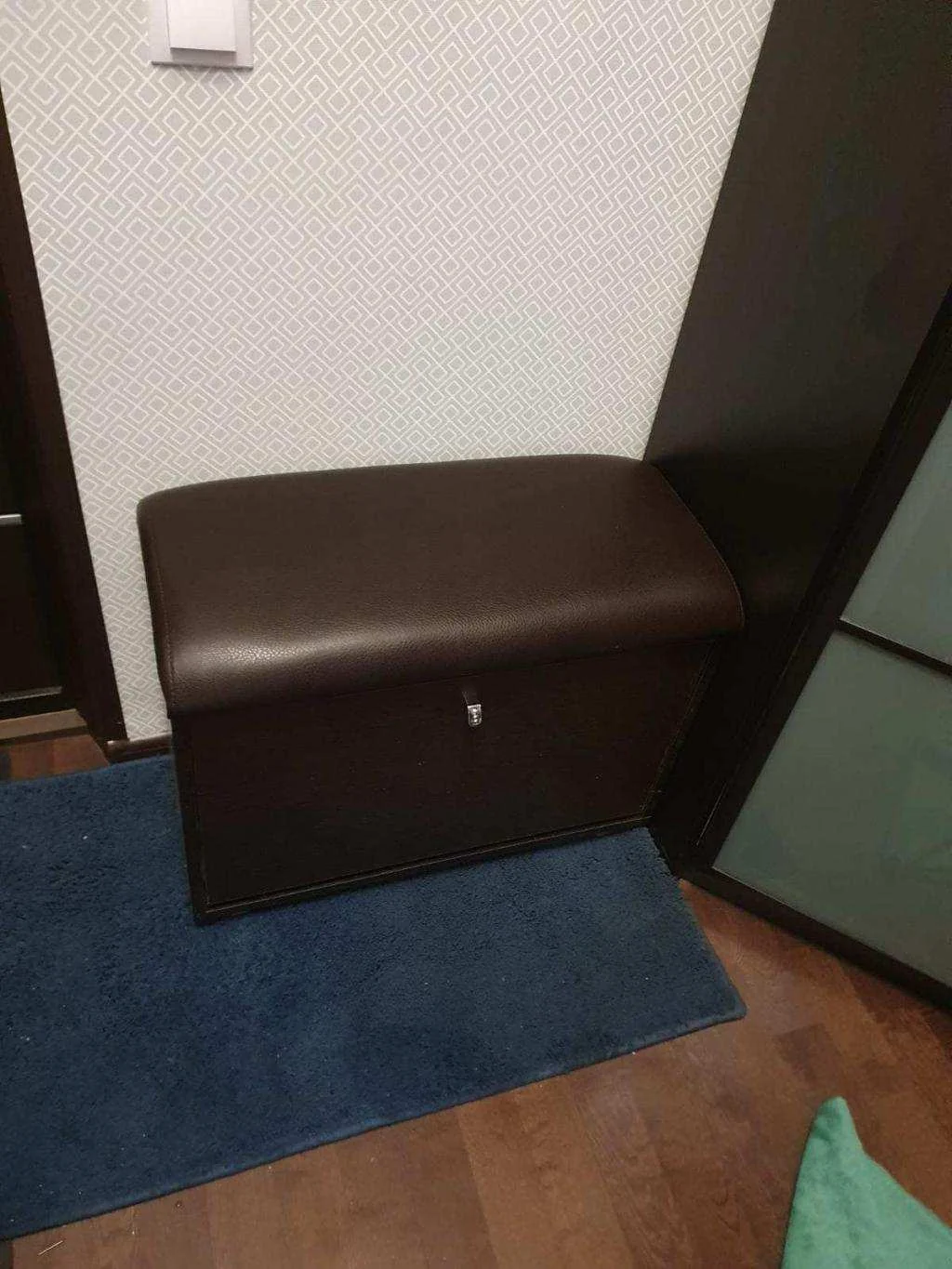 Конструкция с мягким сиденьем и откидной секцией для хранения обуви.