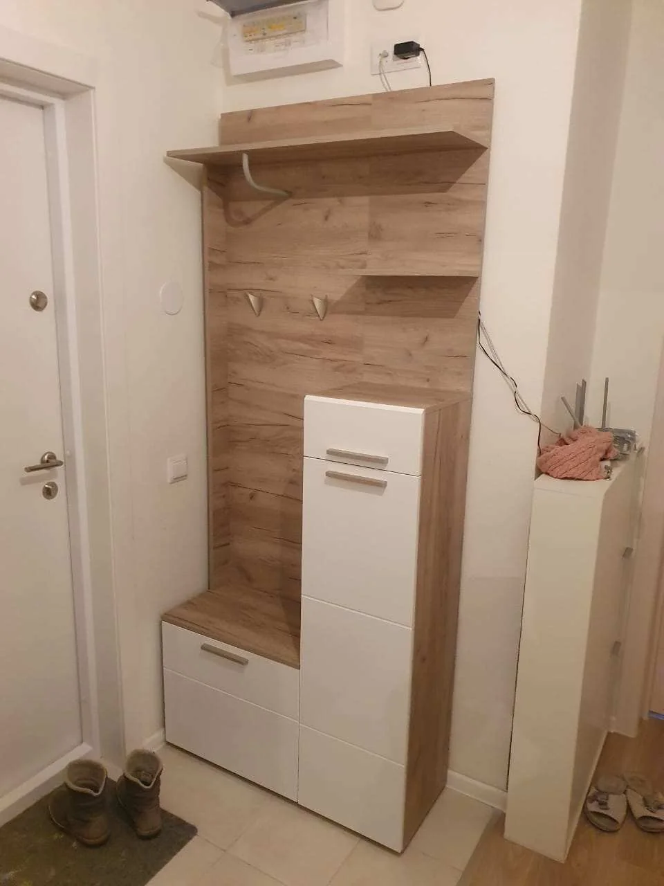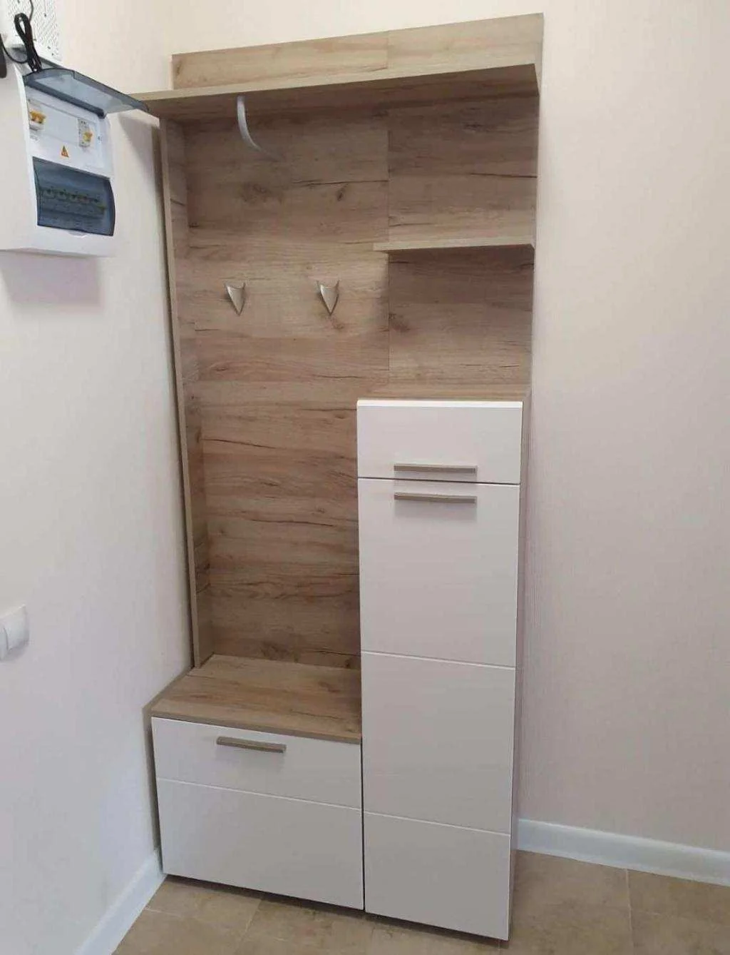 Купили Лайн 10.16 в свою прихожую. Очень нравится цвет. Сама вешалка приглушенного деревянного цввета, а фасады белый глянец. Очень красиво. Качество хорошее претензий к изделию нет.
